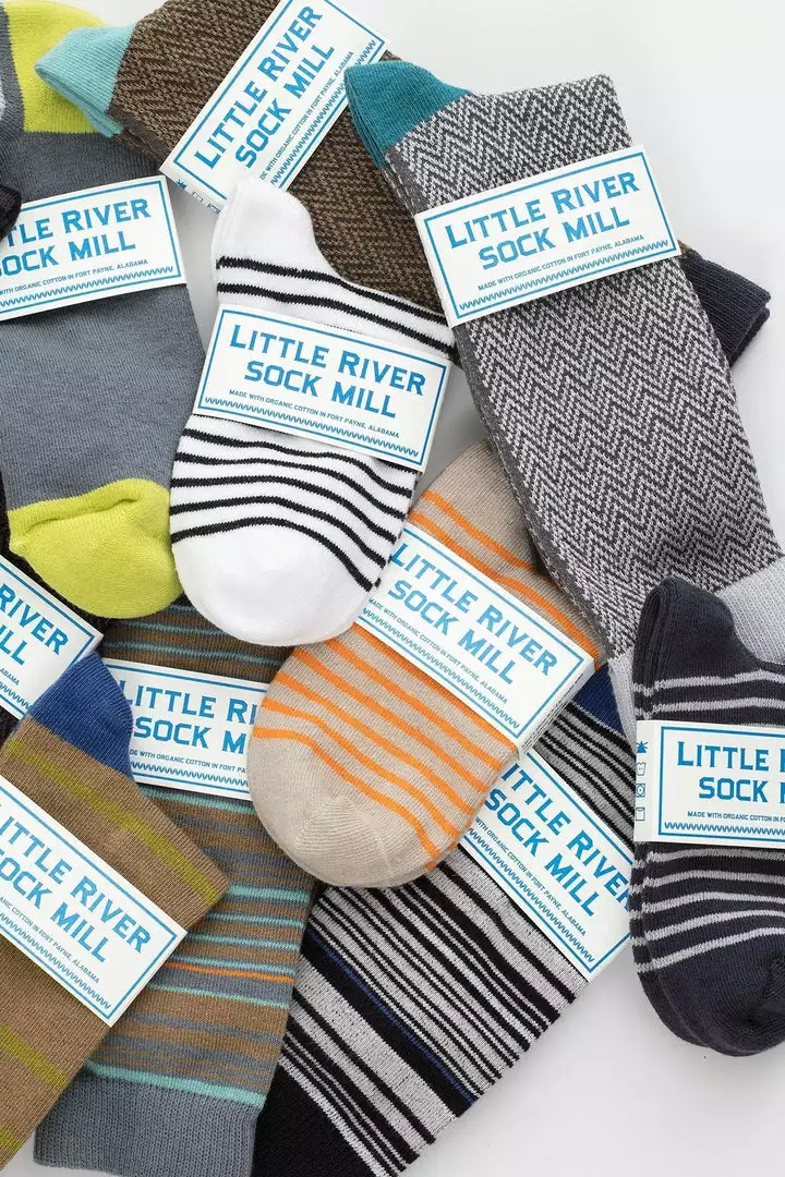 these classic socks are made in a small mill in fort payne, alabama. the designs are inspired by the natural, rustic beauty of the south and each pair is crafted with the utmost care and always honors the land by using the highest quality organic cotton and sustainable practices. these guys make our hearts and our feet feel warm.