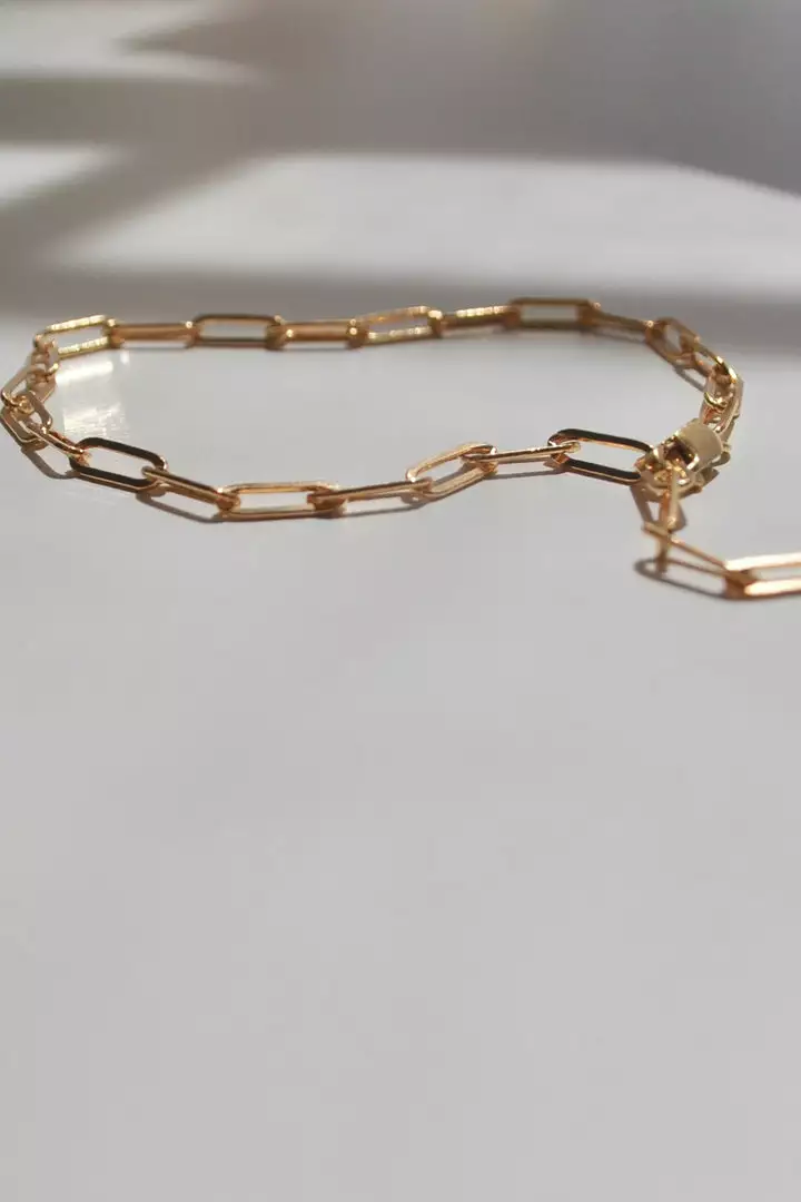 Your missing link. Crafted from a gold-filled chunky chain with elongated links, this bracelet feels has a nice weight to it and feels classically cool. Fully adjustable and closes securely with a lobster clasp. Great layered with other bangles or bracelets.