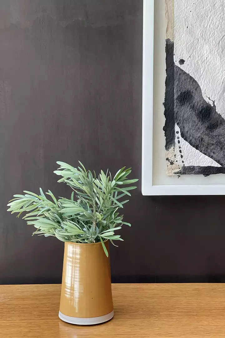 This casual ceramic vase is the perfect centerpiece on a kitchen table or cheering up a sideboard. The earthy hues and wide mouth make it a perfect fit for a colorful bunch of anything and everything.
