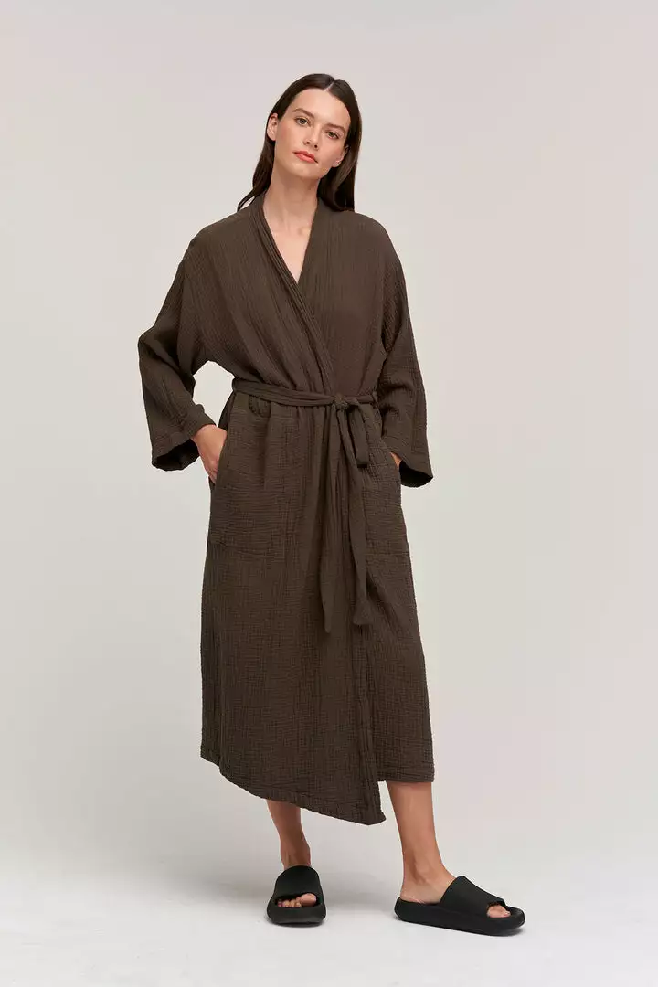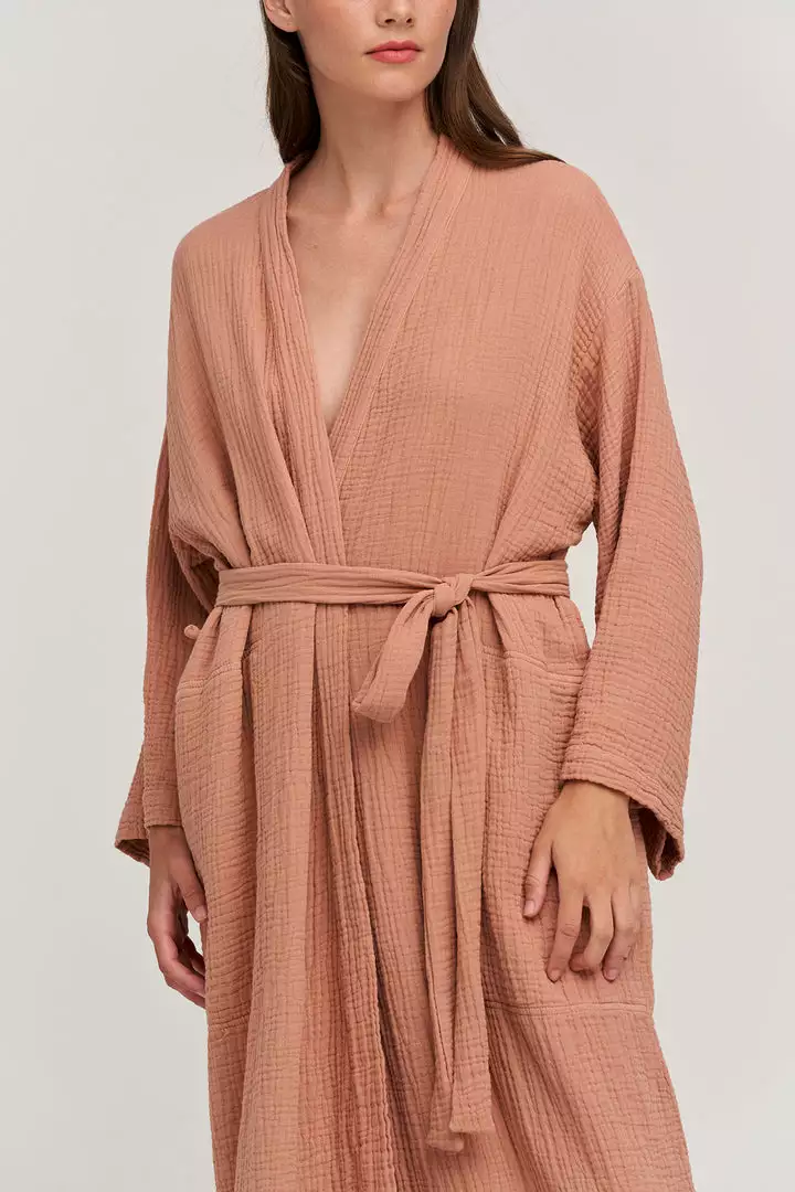 Without realizing it, this robe could quickly become the VIP of your closet. Crafted from a breezy cotton gauze that has a soft texture while being sturdy and durable, this effortless staple is feels wonderful from dawn till dusk.