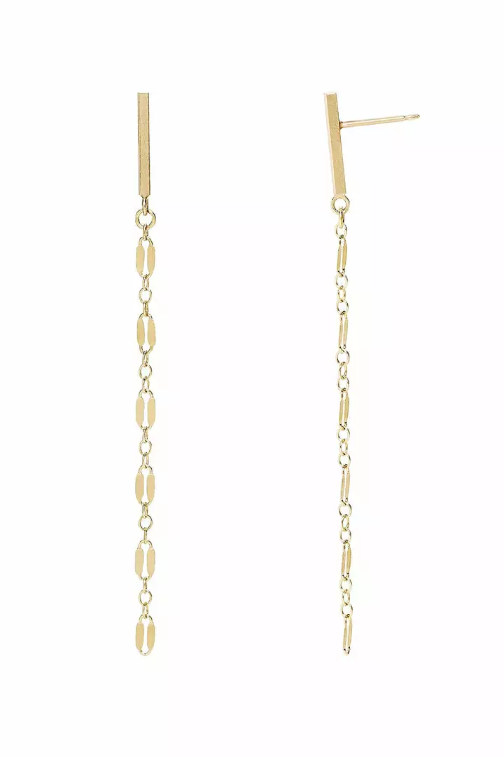 Drop down. Handcrafted from a sterling silver chain with 14K gold fill, these swingy earrings have chain drop and secure on your lobe with a post and back. For extra shimmer and shine pair these with the matching Glitter necklace.
