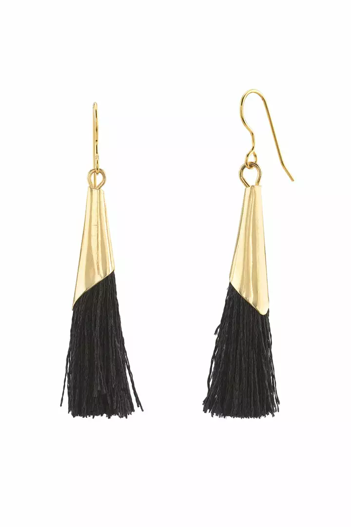 A great combo. We love this black and gold combination. Crafted from a silk tassel that is encased in a gold-fill cone, these slip-on earrings have the perfect amount of dangle and shine as well as an excellent complement to any and all party ensembles.