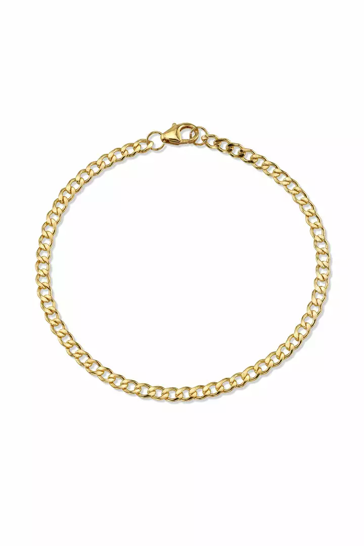 There’s certain accessories that every woman needs in her arsenal and great chain bracelet is one of them. Crafted from a gold-fill curb chain and secured with a lobster clasp, this diminutive wrist dangler is great solo or layered up with a cool cuff.