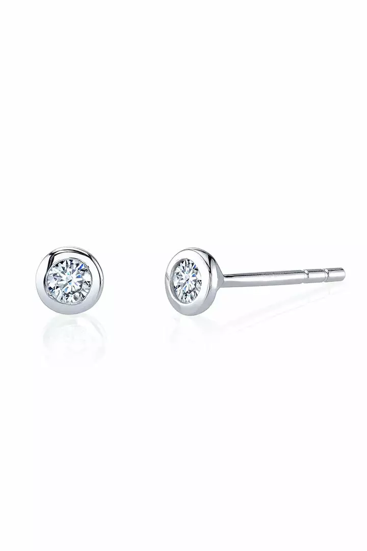 subtle sparkle. crafted from sterling silver and with tiny bit of bling in the center, these studs sit snuggly on your lobe and are perfect for wearing solo or doubled up if you have multiple piercings. truly 24/7.