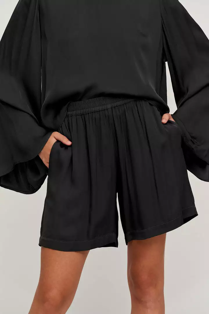 The juxtaposition of a casual silhouette that gets an elevated refresh when crafted from a luxe satin woven. The slight flare to the leg on these shorts lends a gorgeous flutter when walking. Easily dressed up or down.