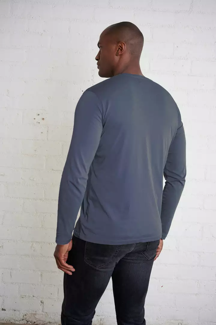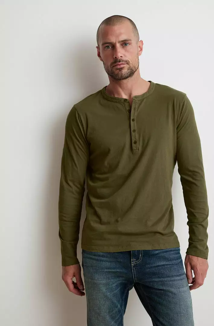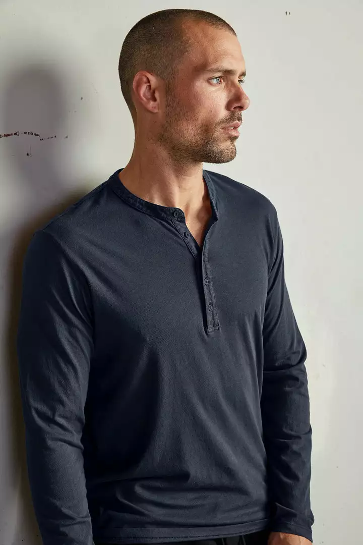 A new classic. crafted from our signature cotton whisper, this henley feels soft and sturdy like an old favorite. With a traditional 5 button neckline, it is great unbuttoned and layered over a contrast tee or just worn solo.