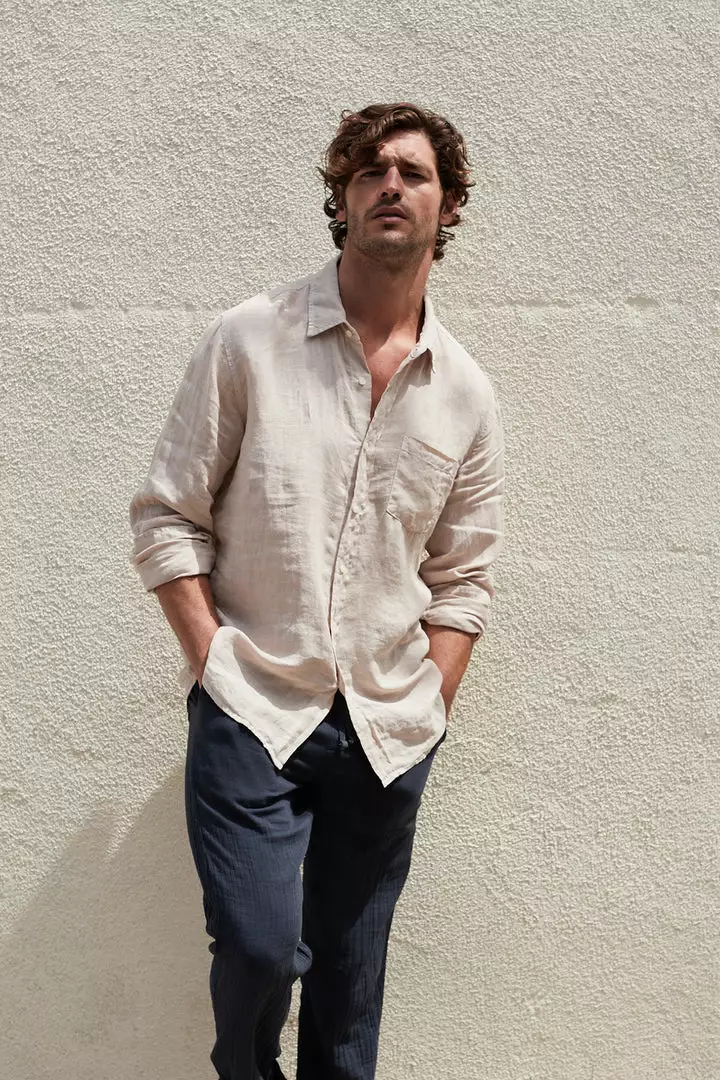 Crafted from a breezy woven linen, this long sleeve button up features a slightly relaxed fit and all the traditional details you know and love.