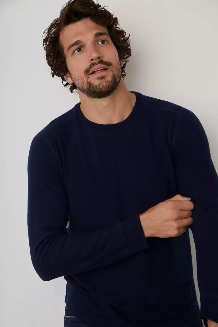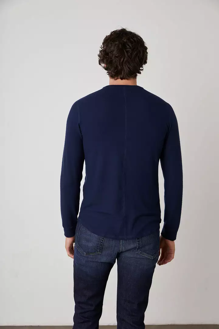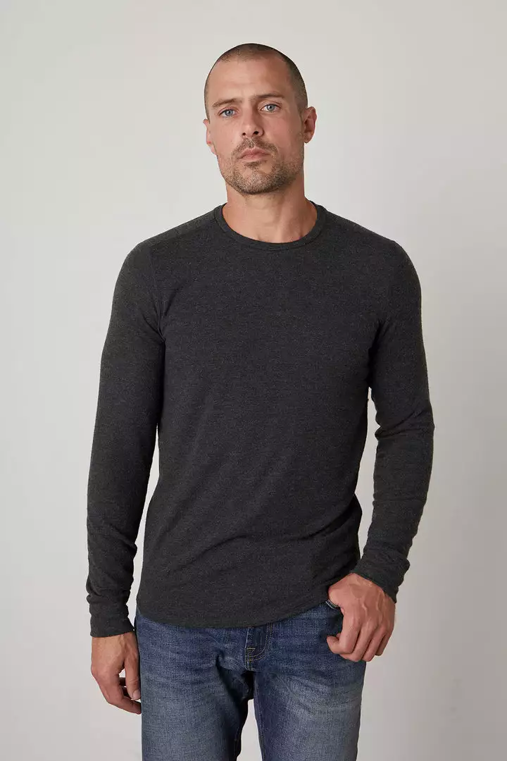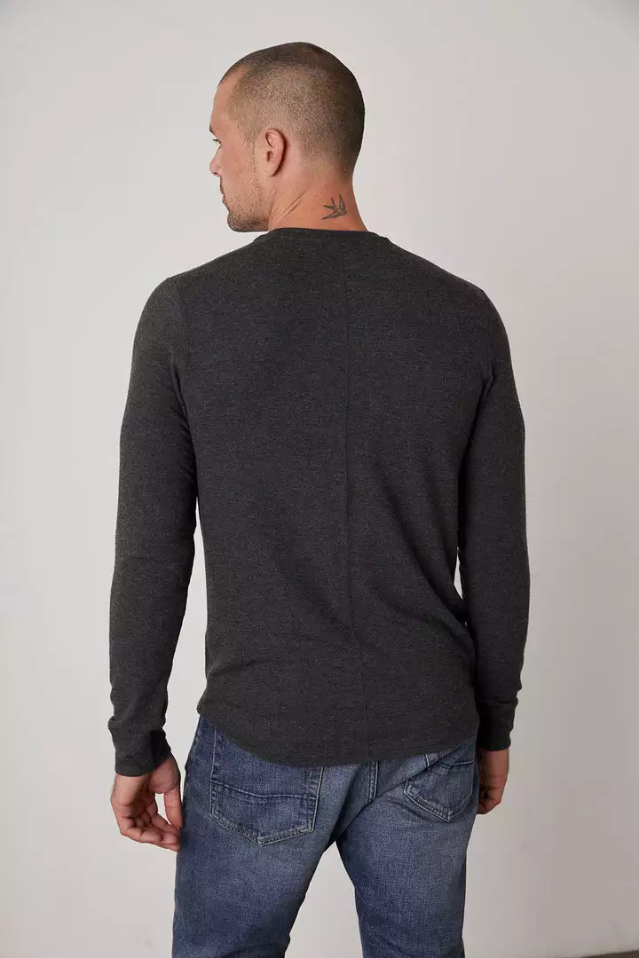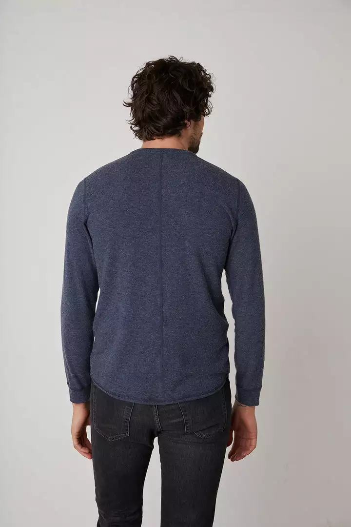 KEEP YOUR OFF-DUTY BASICS LOOKING STYLISH WITH THIS HEATHERED LONG SLEEVE KNIT SHIRT. THE FABRIC IS SUPER SOFT AGAINST THE SKIN AND THE BEST LAYERING WEIGHT. CHECK OUT THE ENGINEERED TUBULAR STITCHING ON THE SEAMS AND THE VISIBLE SEAM DOWN THE BACK.