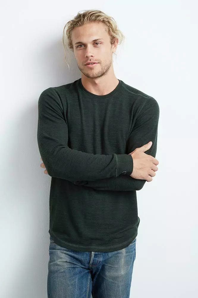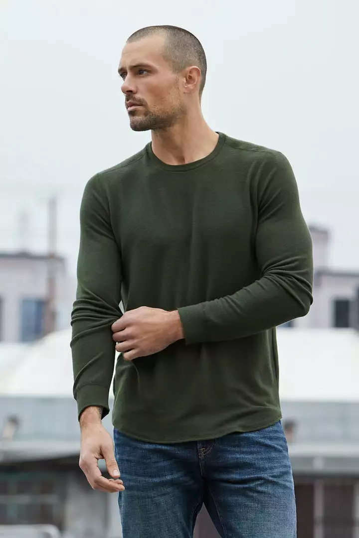KEEP YOUR OFF-DUTY BASICS LOOKING STYLISH WITH THIS HEATHERED LONG SLEEVE KNIT TOP. THE FABRIC IS SUPER SOFT AGAINST THE SKIN AND THE BEST LAYERING WEIGHT. CHECK OUT THE ENGINEERED TUBULAR STITCHING ON THE SEAMS AND THE VISIBLE SEAM DOWN THE BACK.