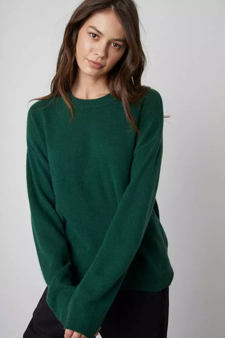 The luxe cashmere is the standout so the details are kept to a minimum. A timeless crewneck with laid-back tweaks like a relaxed shoulder and subtle, ribbed trims.