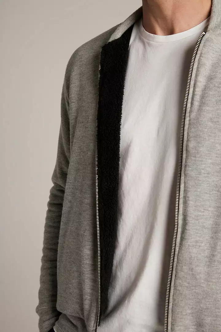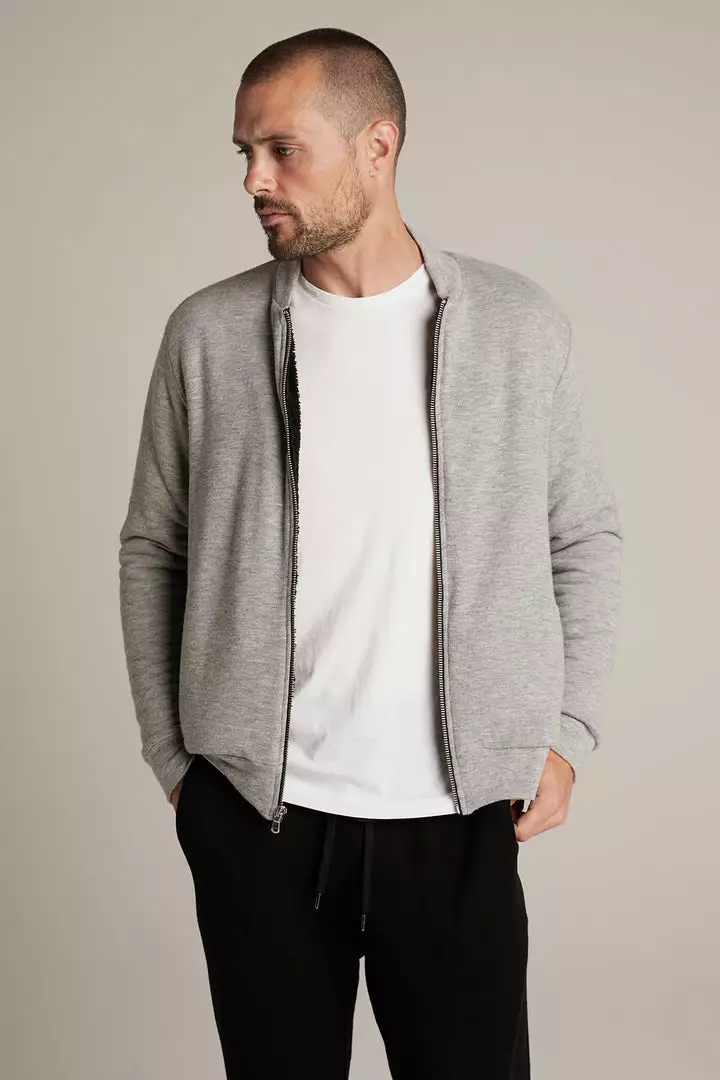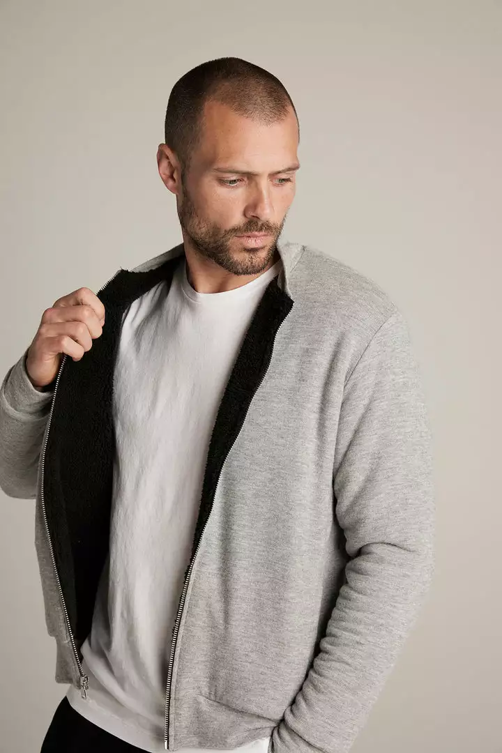 just zip it. crafted from our signature cozy jersey, this bomber style is the perfect lightweight, transitional piece. with a soft faux sherpa lining and all the traditional trims like ribbed bands at the neckline, cuffs and hem, as well slash pockets and a zipper front. think of this as a cool hybrid between a cardigan and a casual jacket.