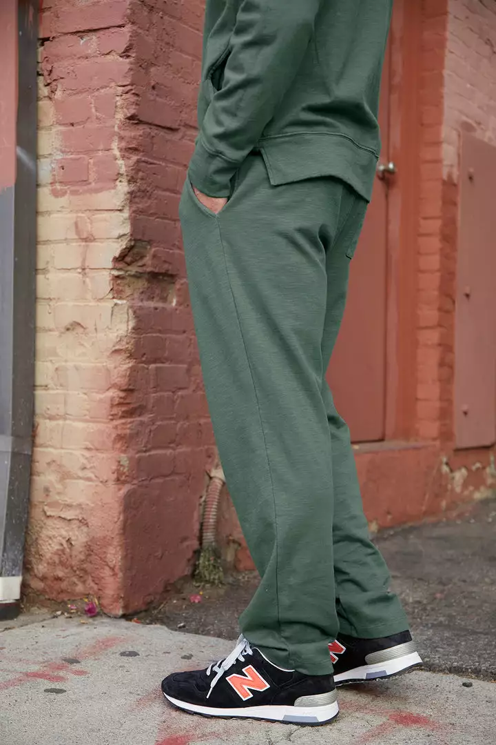 A lounge pant to rival all others. A lightweight knit with extra stretch makes this a true indoor/outdoor favorite, while the traditional double fold hem lends a cool slouch to the leg.