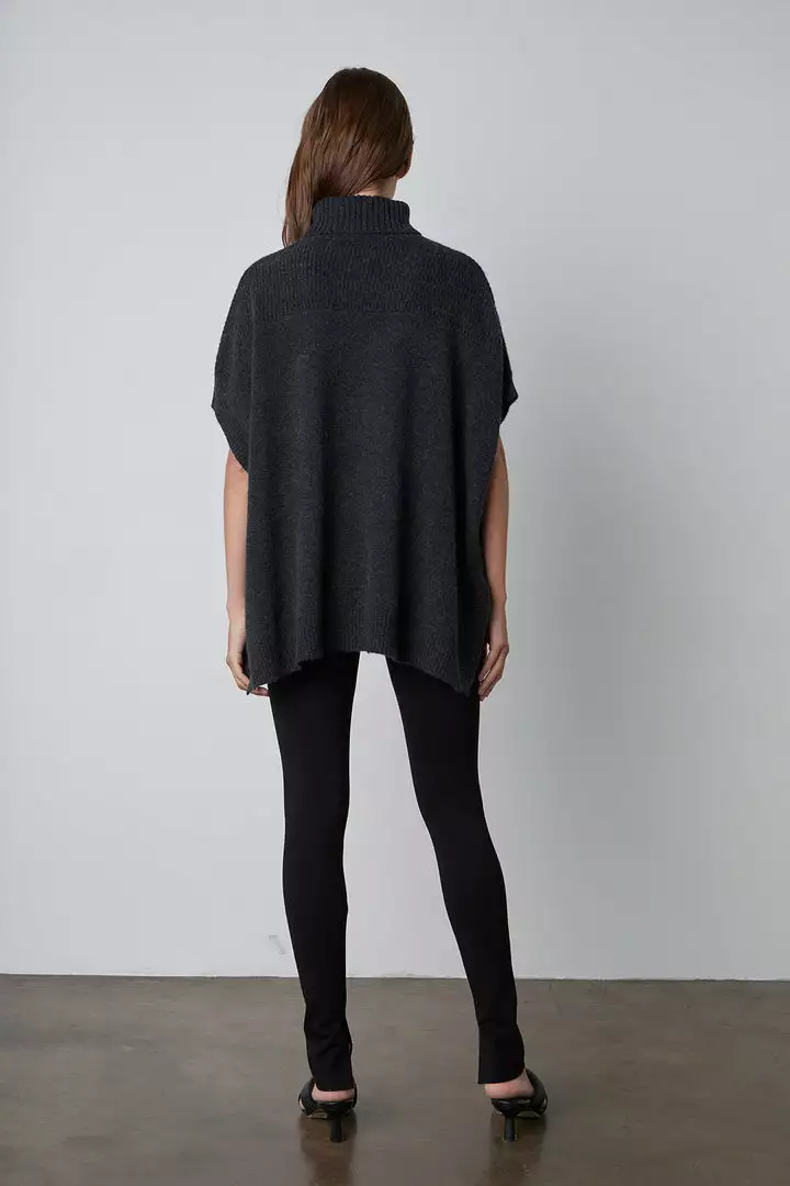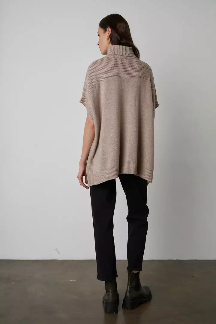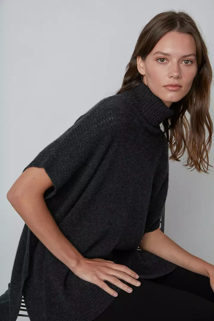 An effortless silhouette designed after a classic poncho, this medium-weight cashmere knit has clean lines and a gorgeous drape. A cozy roll-neck and decorative stitch-work across the shoulders.