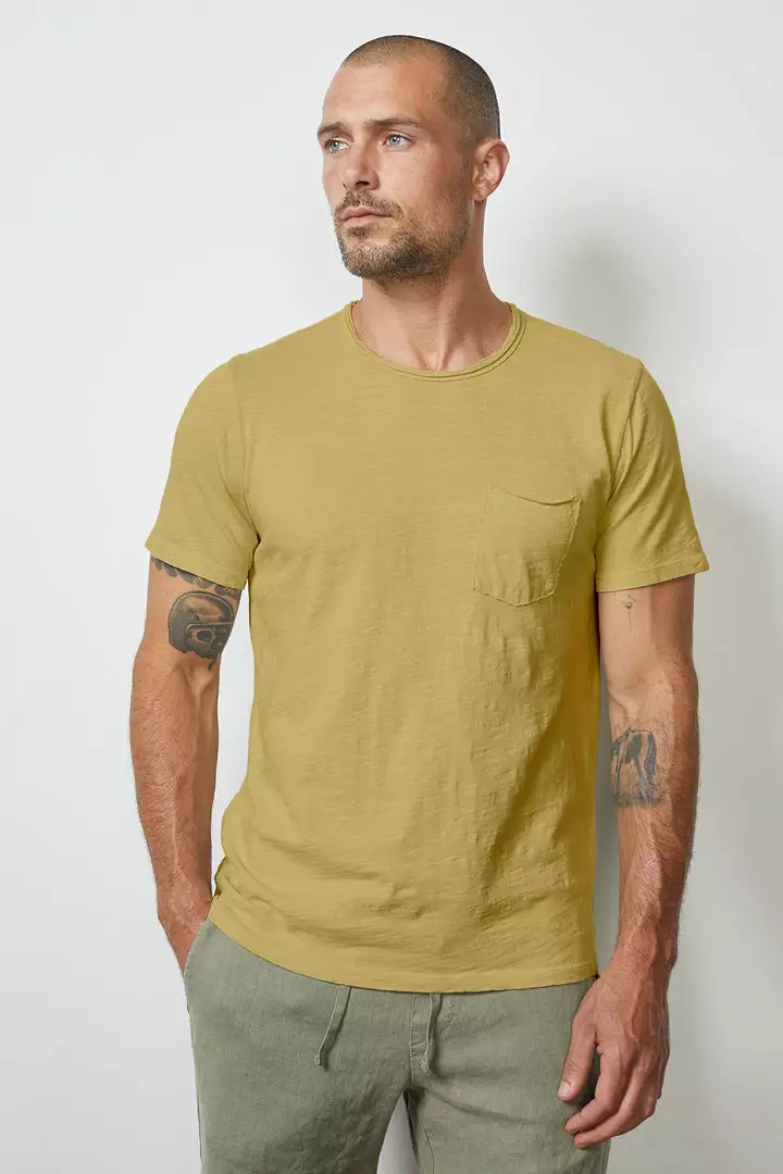 Velvet By Graham & Spencer CHAD RAW EDGE COTTON SLUB POCKET TEE