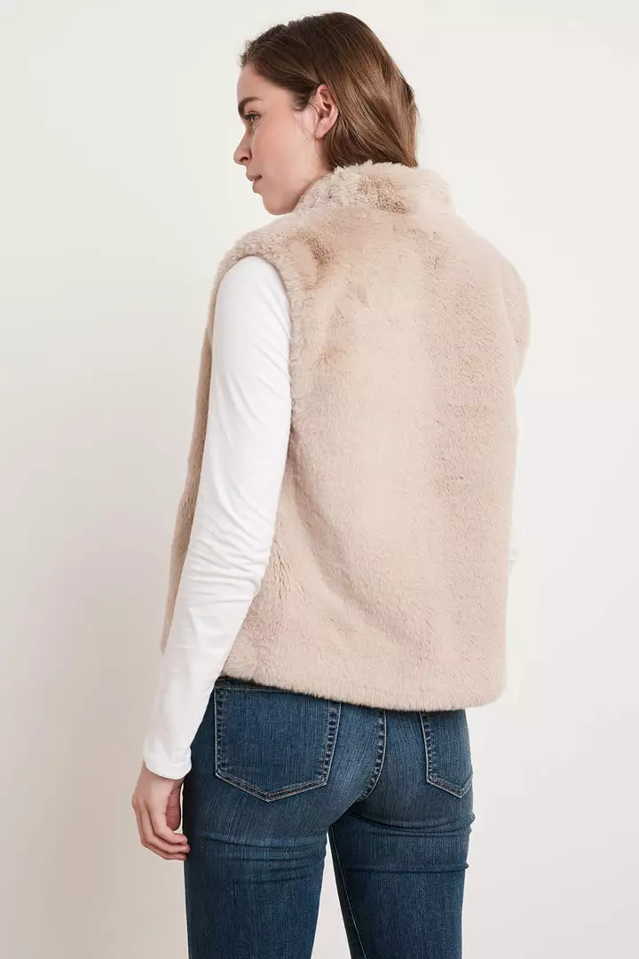 All about easy. Crafted from an eco-chic faux fur, this pop on vest is the perfect layering piece for cooler months. Featuring an open front, hidden slash pockets on the side and a subtle stand-up collar. Cuddle up.