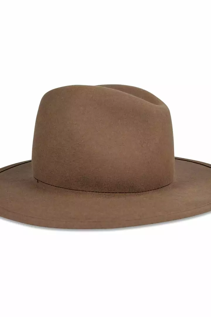 A classic wool felt with medium-height crown so it sits snugly on the head. Minimalist with no embellishments or bands, it’s easy to add your own flourish. A great everyday topper.