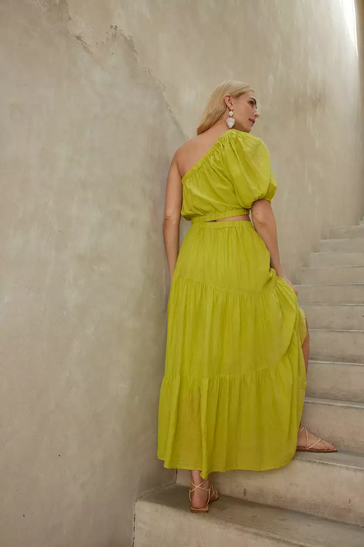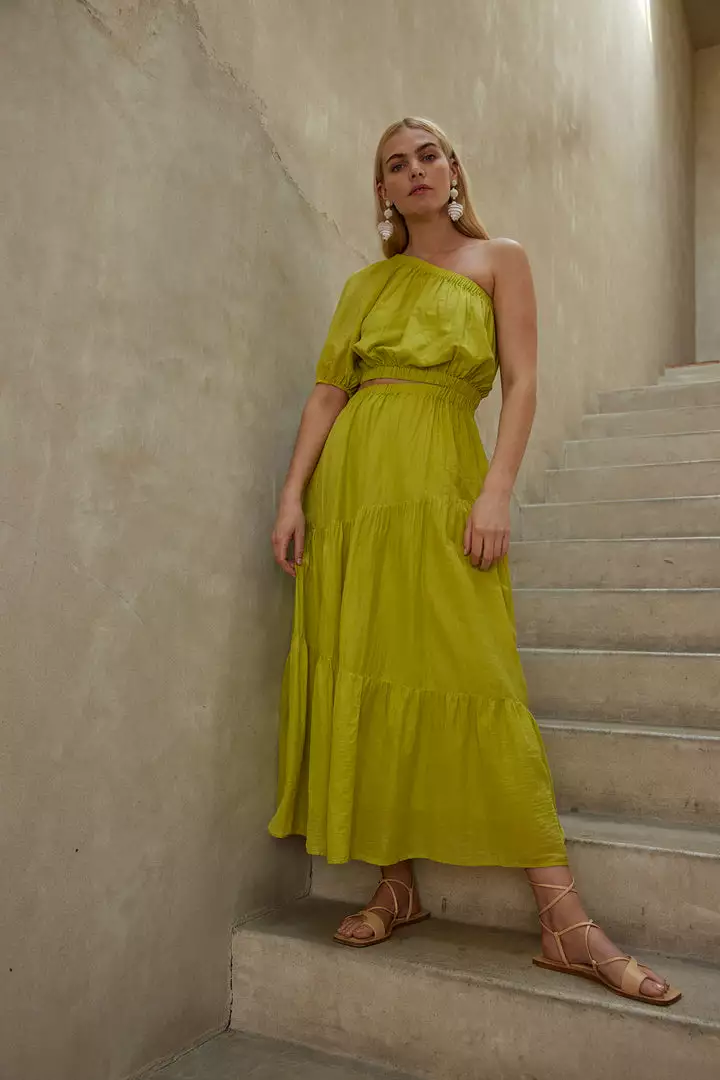 The hot weather allure of an ankle-skimming maxi skirt in a luxe silk cotton voile that has a hint of sheen. Tiered panels of delicate volume with endless styling options offer day-to-night appeal.