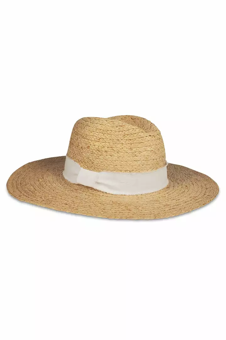 Woven from a natural raffia, this fedora-style hat also features an understated linen ribbon around the crown. A very chic SPF option.