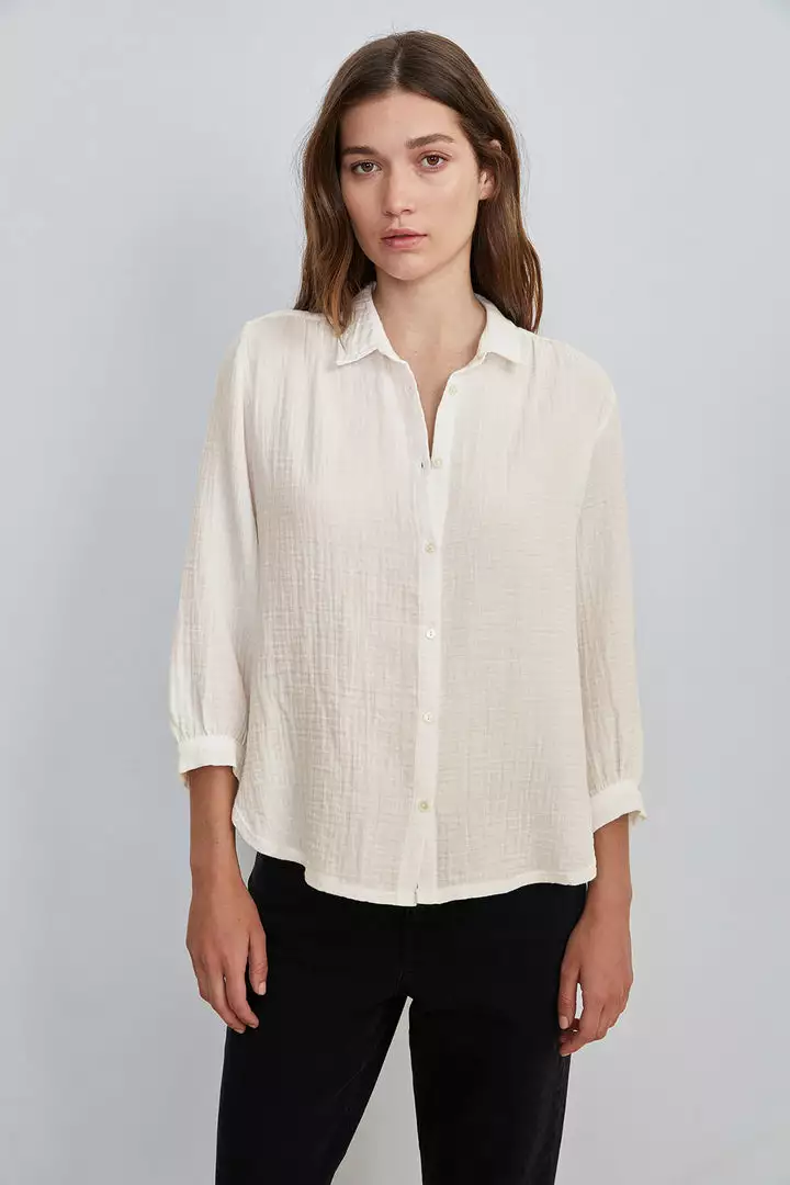 Velvet By Graham & Spencer DAYNA 3/4 SLEEVE BUTTON-UP BLOUSE