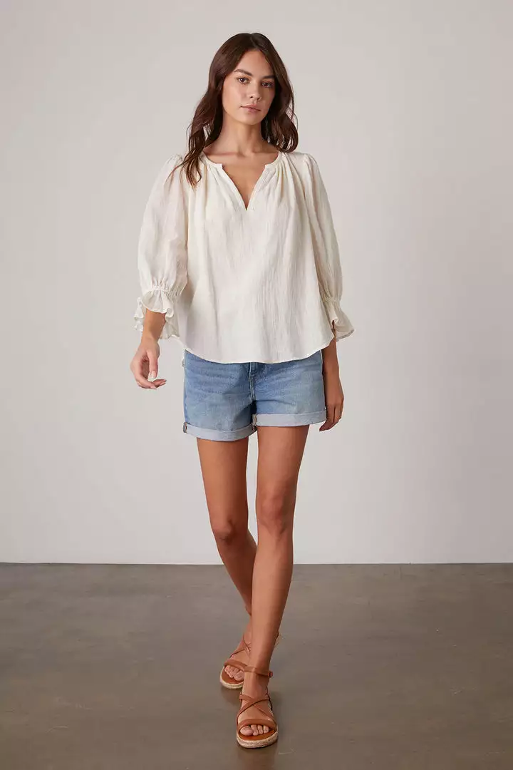 A lightweight cotton gauze woven is a summer staple in the classic peasant-blouse silhouette that’s laid-back and endlessly versatile.