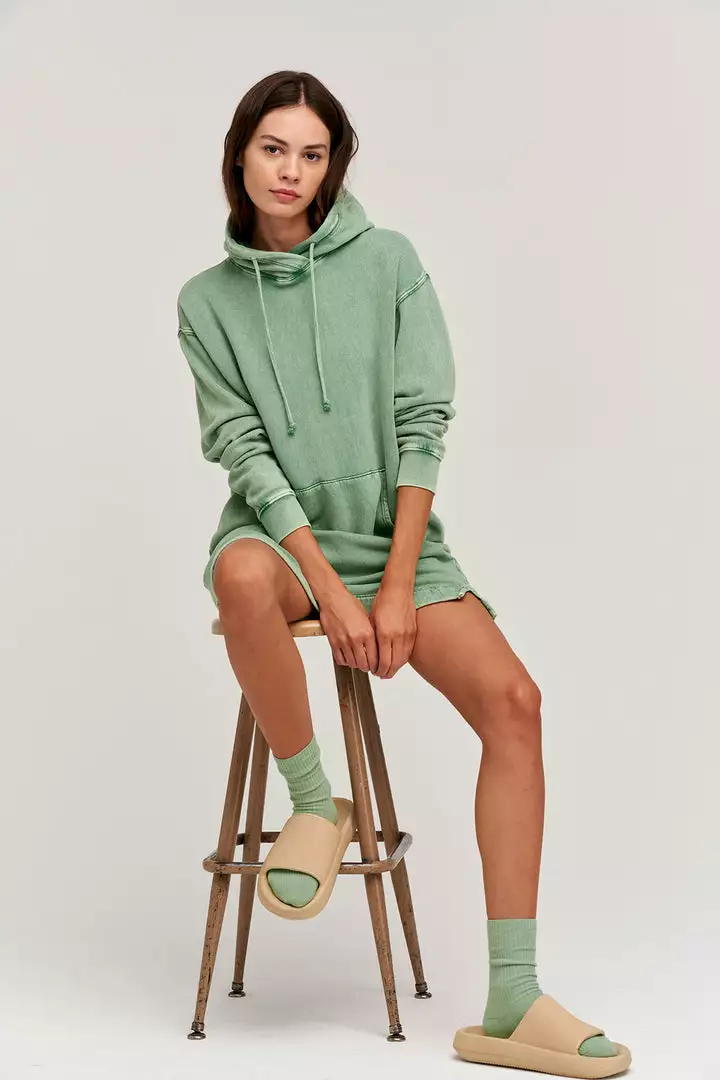Relaxed, cool and weekend essential. A cotton fleece that’s been given a mineral wash, which enhances the softness and lends a perfectly imperfect look to this classic hoodie dress. Wear solo or layer over leggings.