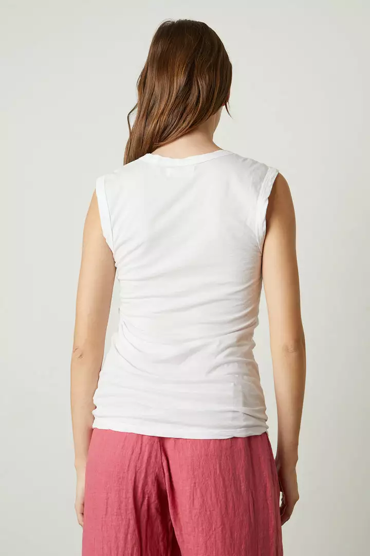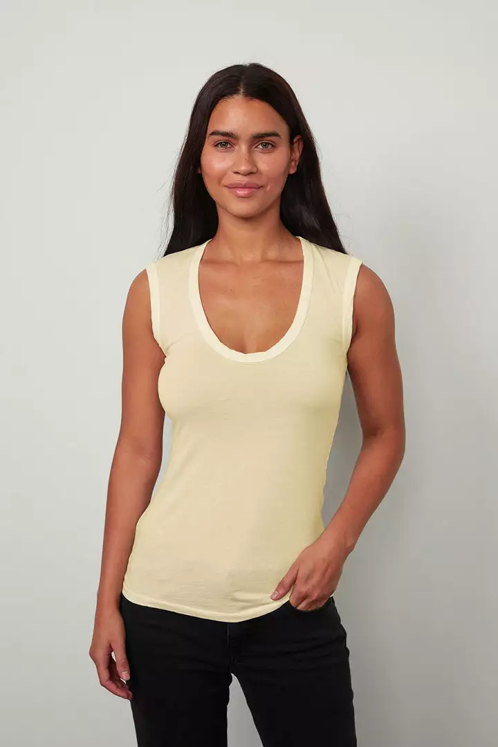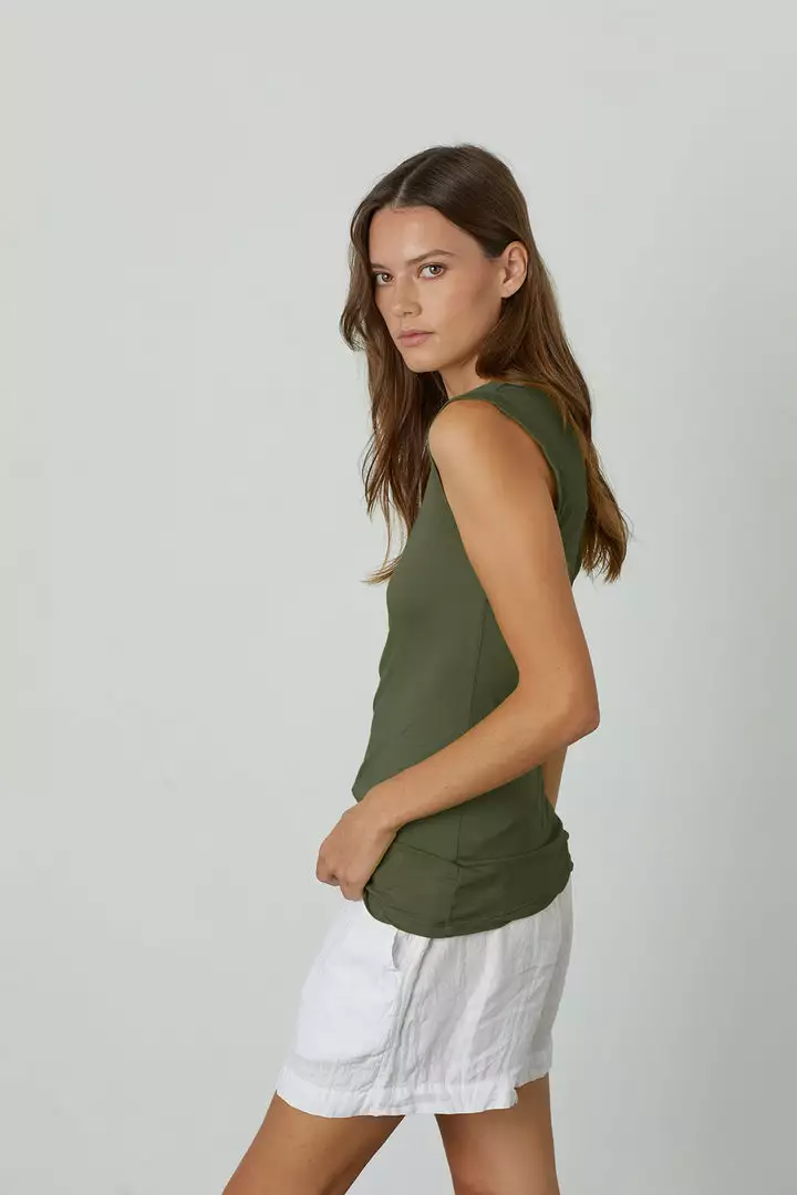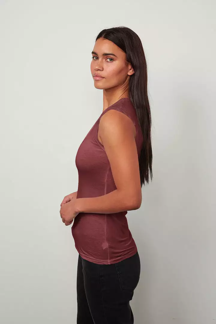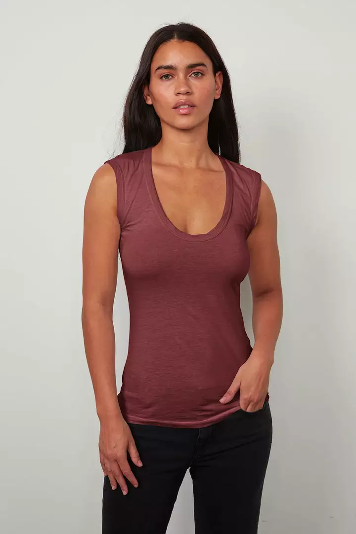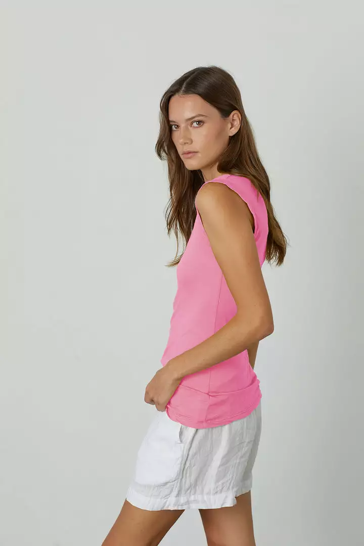 Our favorite laid-back tank is crafted in our soft, gauzy whisper. It’s lovely low-scoop-neck and cropped sleeves make it the most wearable tank in town.