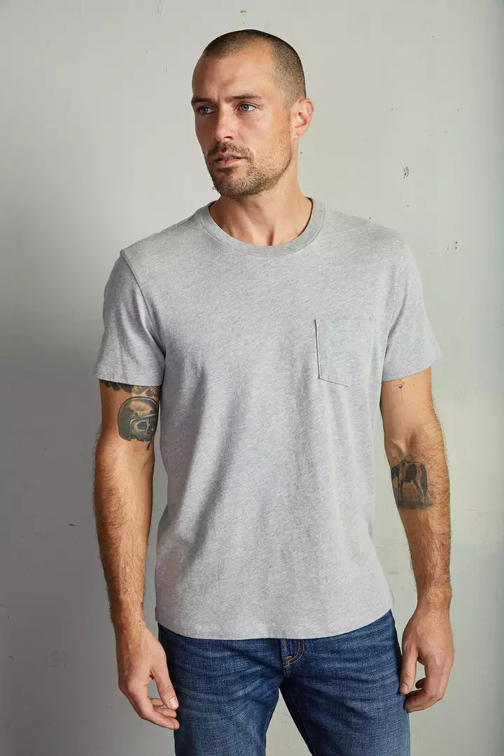 A medium-weight tee that is beyond soft. Classic style in a classic hue, as well as the traditional patch pocket on the chest. You may want a few.