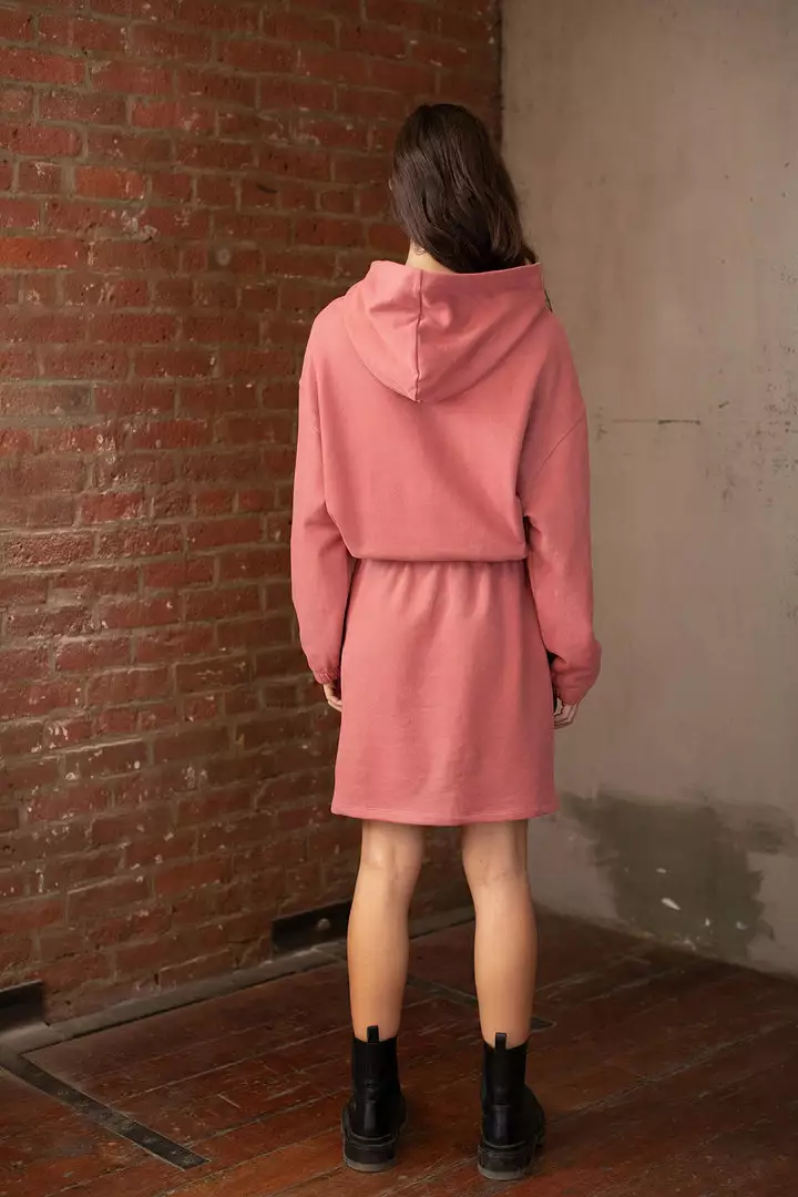 Cool and warm. Crafted from our supremely soft fleece, this dress checks all the weekend casual boxes with an oversized hoodie, drawstring waist and a sweet cinch at the cuffs.