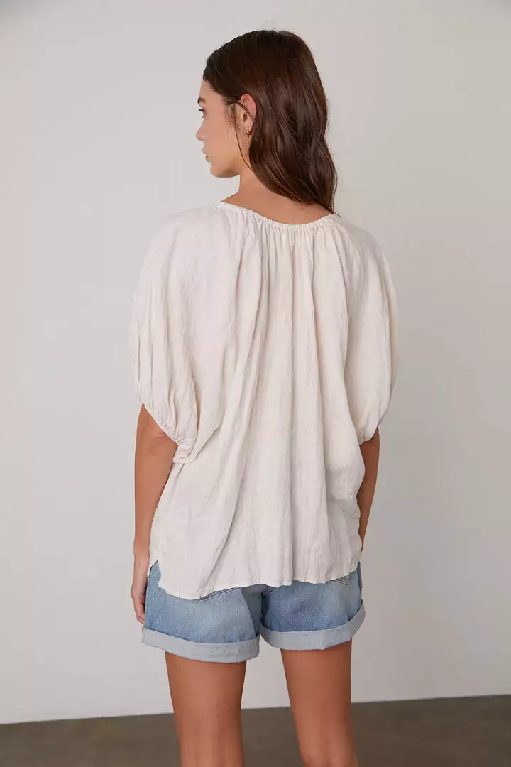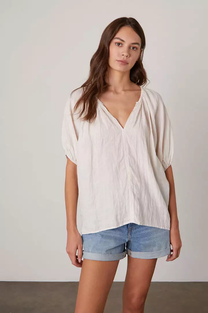 Velvet By Graham & Spencer JANINE PUFF SLEEVE LINEN TOP Womens