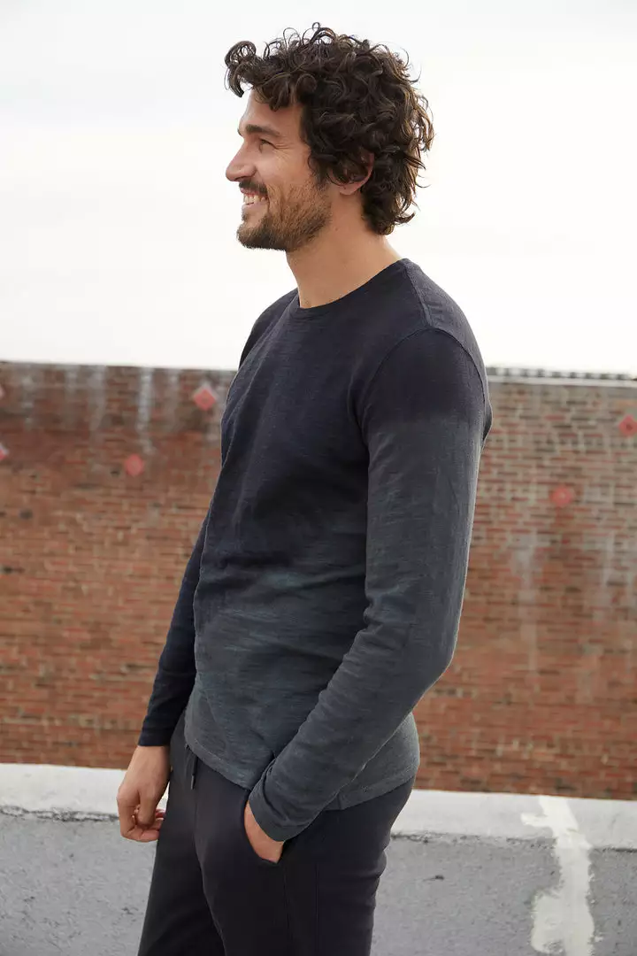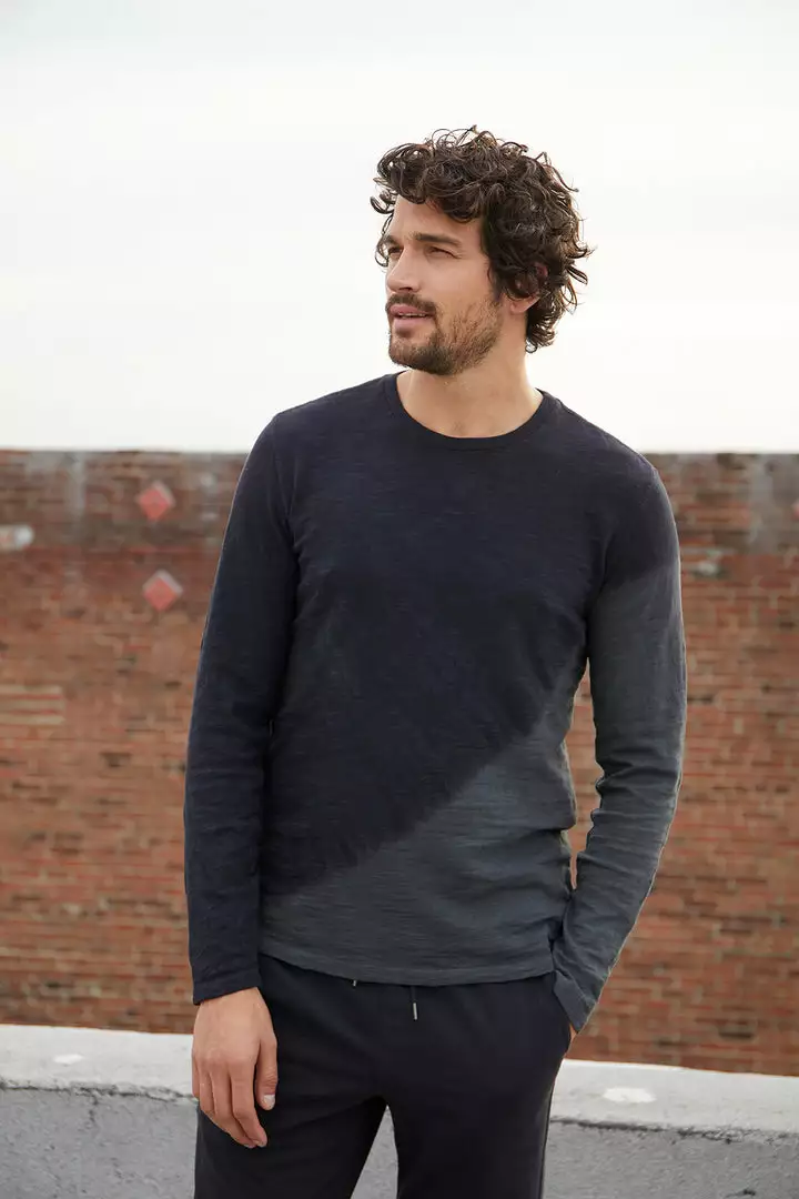 A long-sleeve version of our favorite tee. A medium-weight cotton knit with a slightly heathered texture that lends a vintage feel, while the diagonal tie-dye further adds to the old-school look.