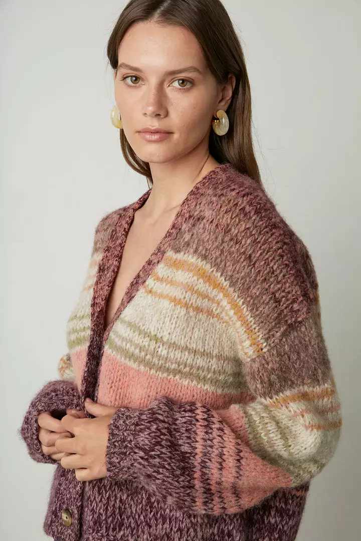 Velvet By Graham & Spencer LARA STRIPED BUTTON FRONT CARDIGAN