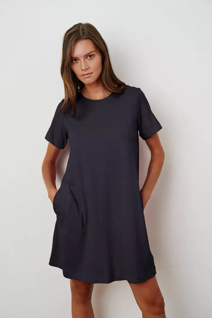 The ultimate weekend piece. Our signature cotton slub is beloved for its soft, heathered texture and this dress also has a light swing to its shape as well as the very-necessary hip pockets.