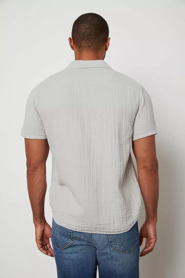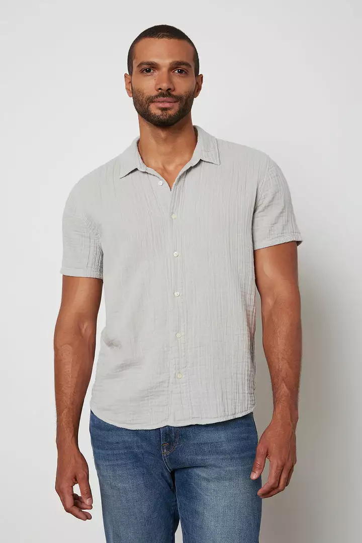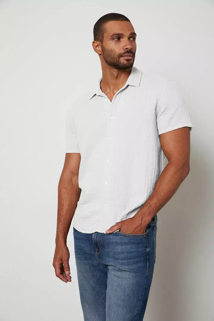 A casual/dressy button down needs to be in everyone’s wardrobe. Easily styled with shorts, denims or a tailored trouser, this one is crafted from a breezy cotton gauze with its signature waffle texture.