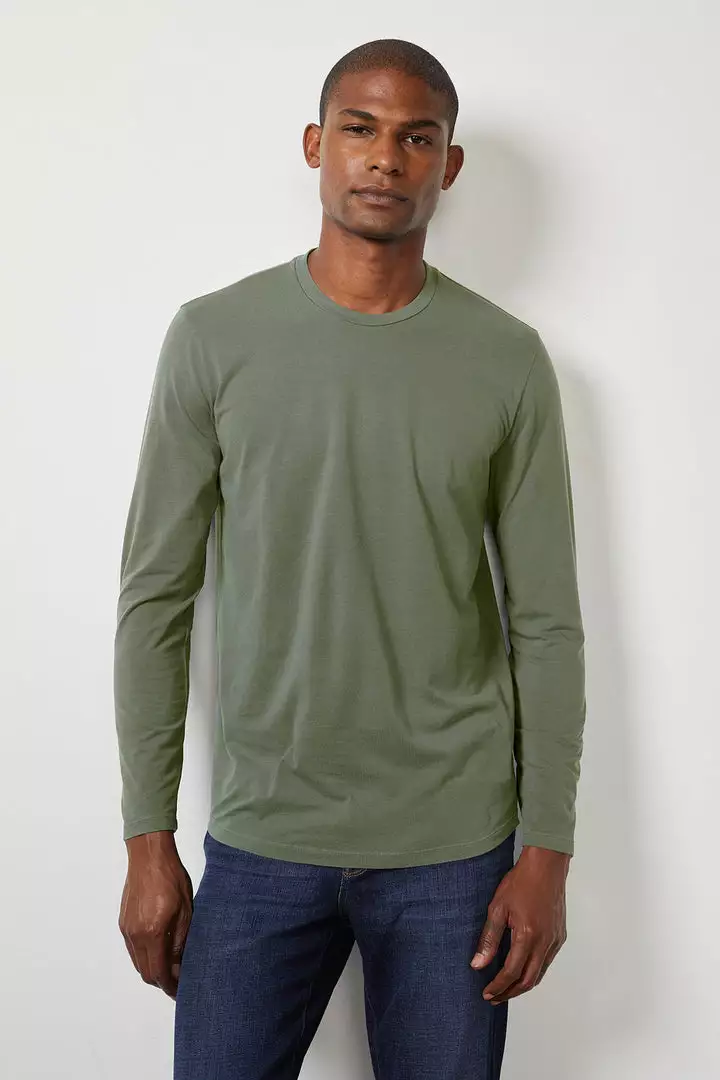 The easy answer when you need to get ready quick. This crew neck, long sleeve tee is crafted from a soft cotton blend with a hint of stretch.