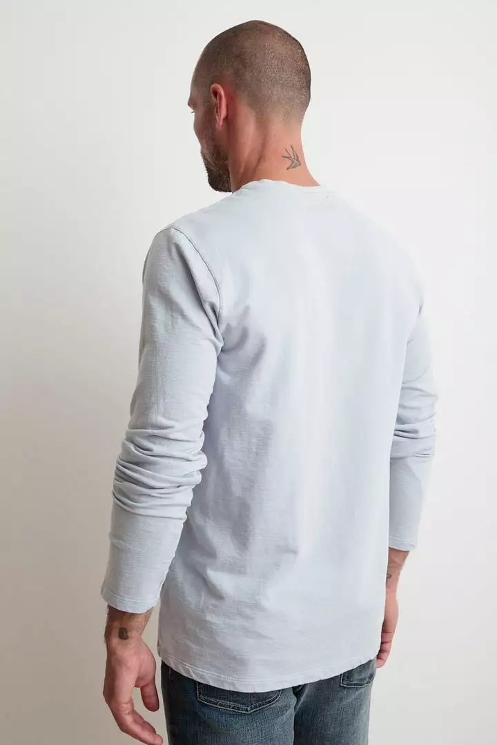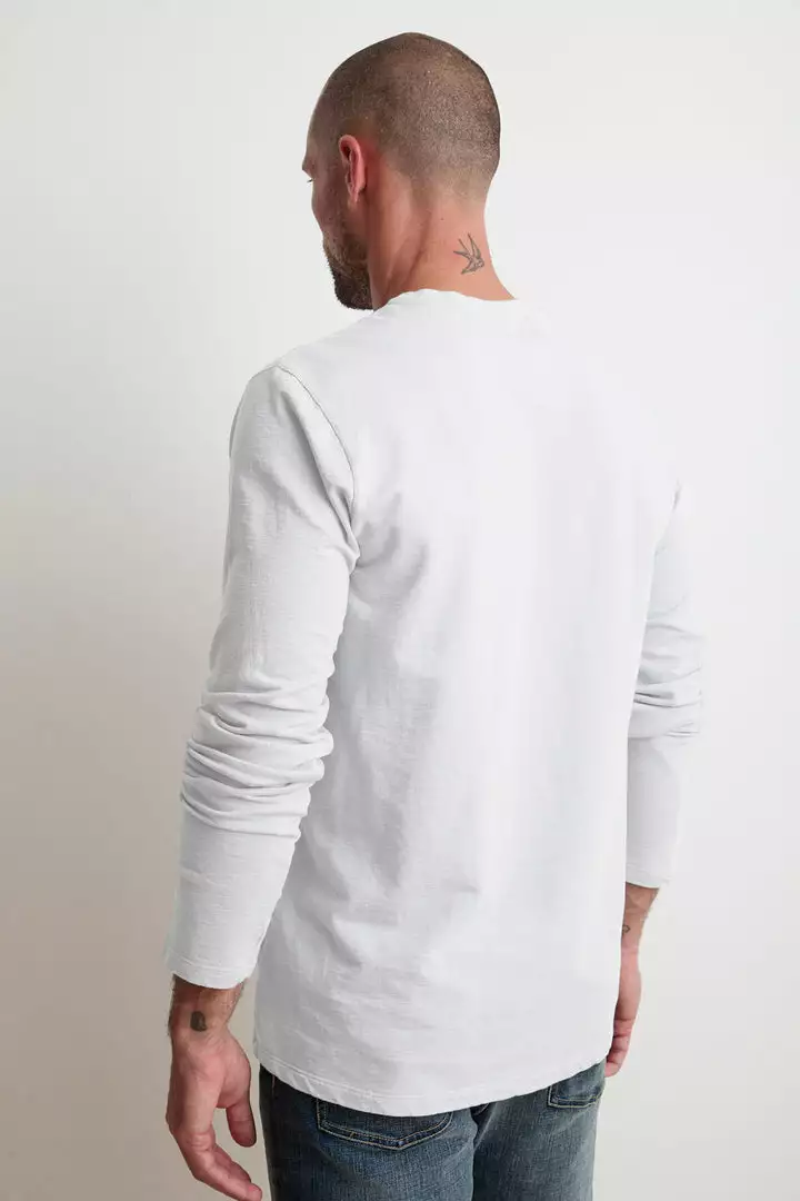 Go-to. This medium-weight cotton knit long-sleeve tee is essential for those cooler summer nights. With a single raw-edge patch pocket on the chest and an all-over relaxed fit, it’s California laid back style personified.
