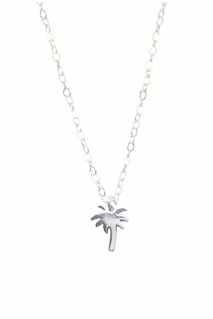 so charming. california dreaming at its sweetest. this is a delicate, sterling silver chain that features a charm of a palm tree dangling from the middle. a perfect layering piece but equally great worn solo.