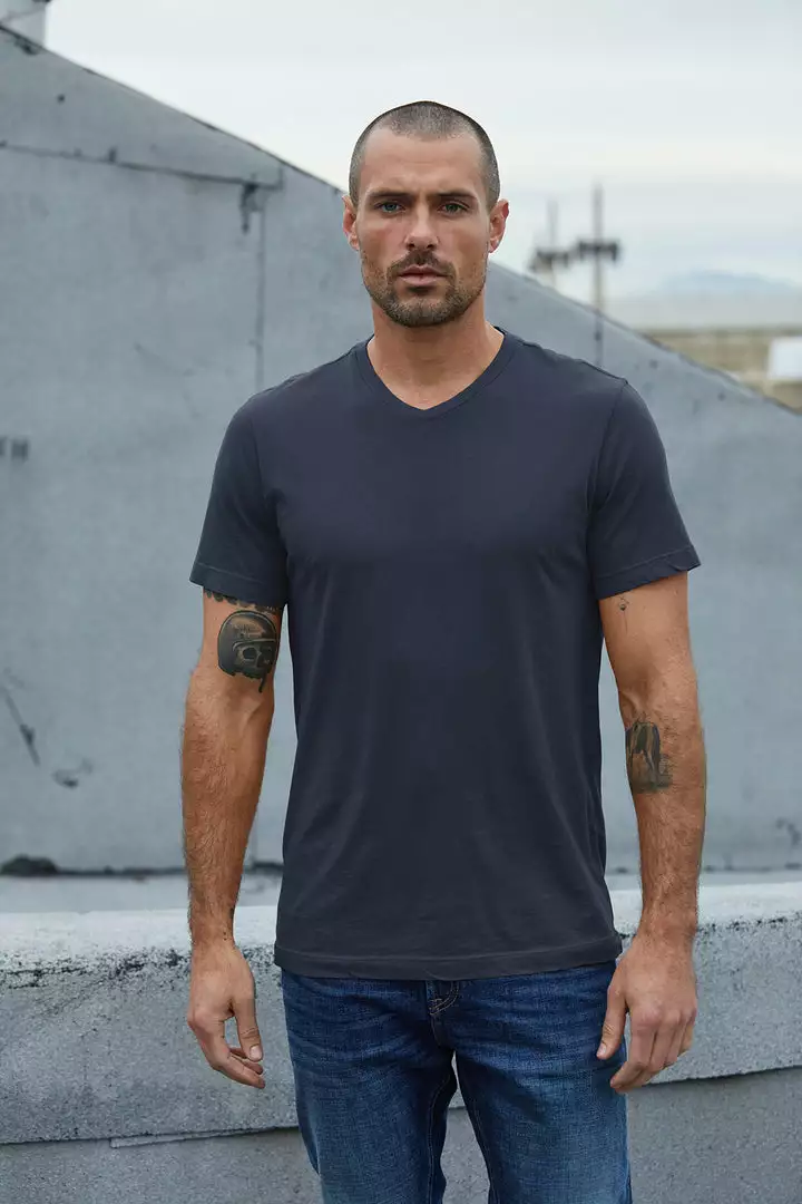 A clean silhouette that offers unrivaled utility. Crafted from our whisper knit and featuring a perfectly restrained V-neckline, this tee is designed for a flawless fit and cut slimmer than standard version so that it can easily layer. All our tees are garment dyed in small batches.