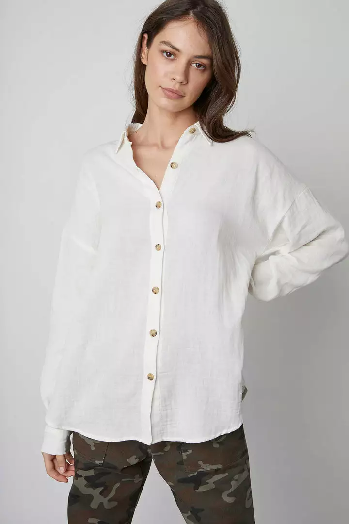 Velvet By Graham & Spencer SAWYER COTTON GAUZE BUTTON-UP TOP