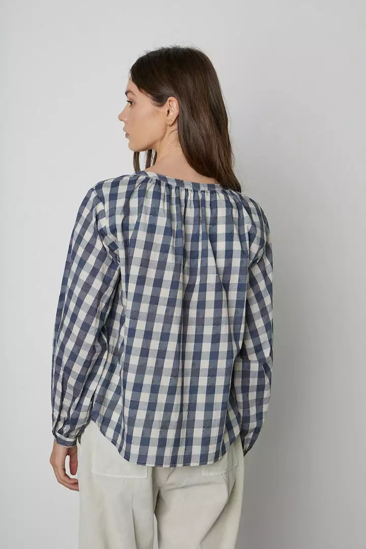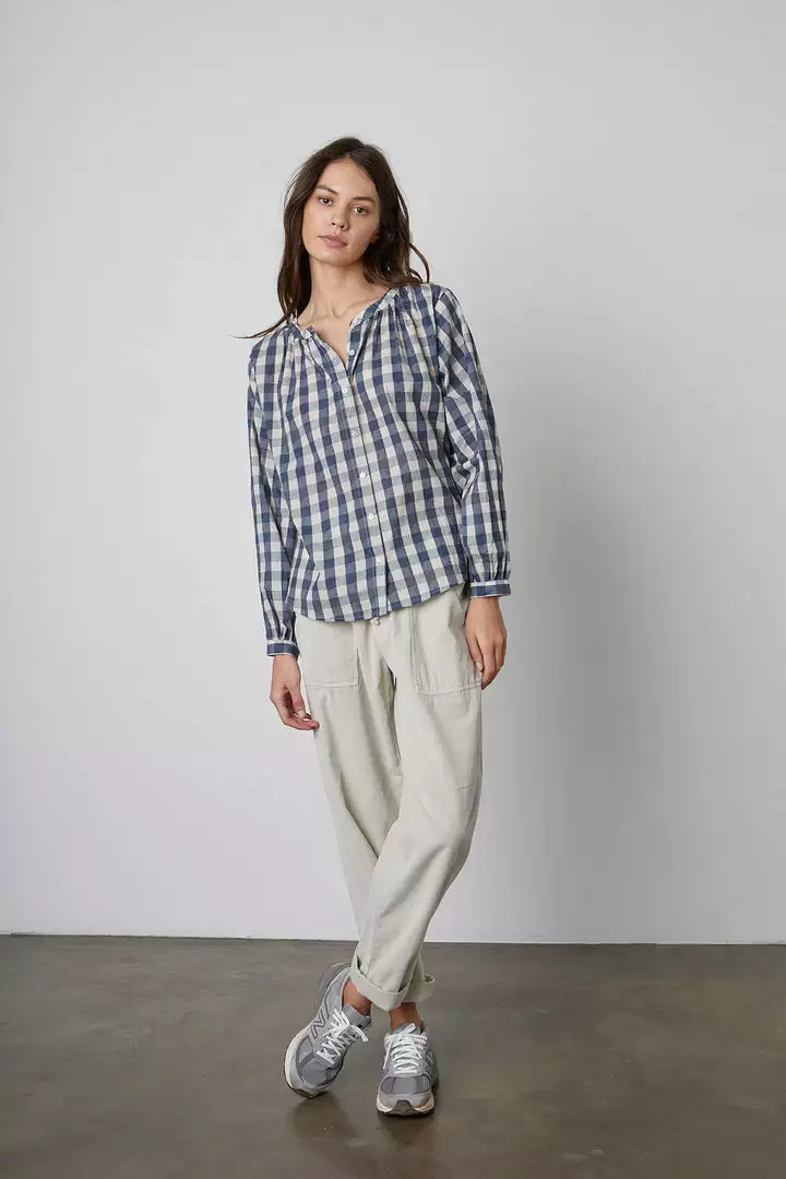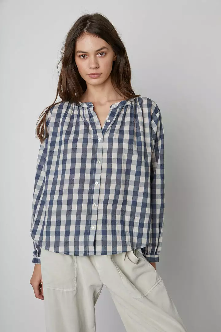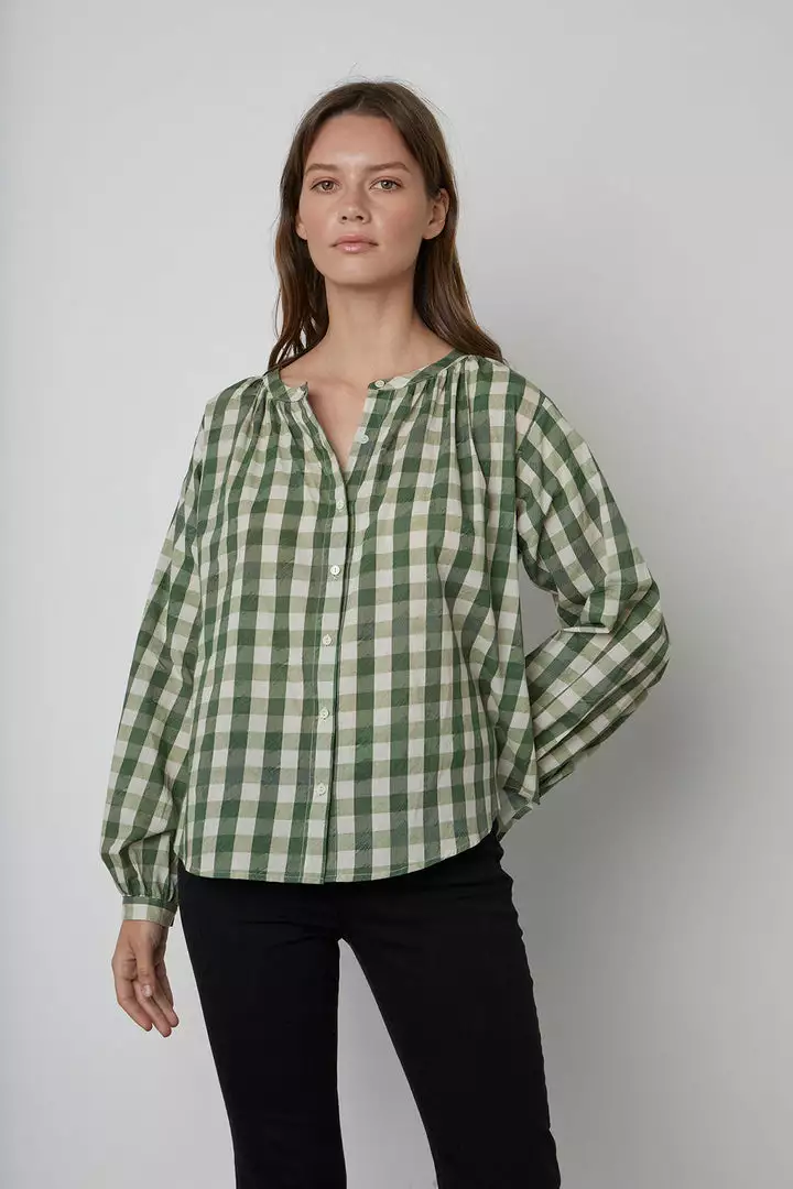 Velvet By Graham & Spencer SHIREEN PRINTED GINGHAM BUTTON-UP BLOUSE