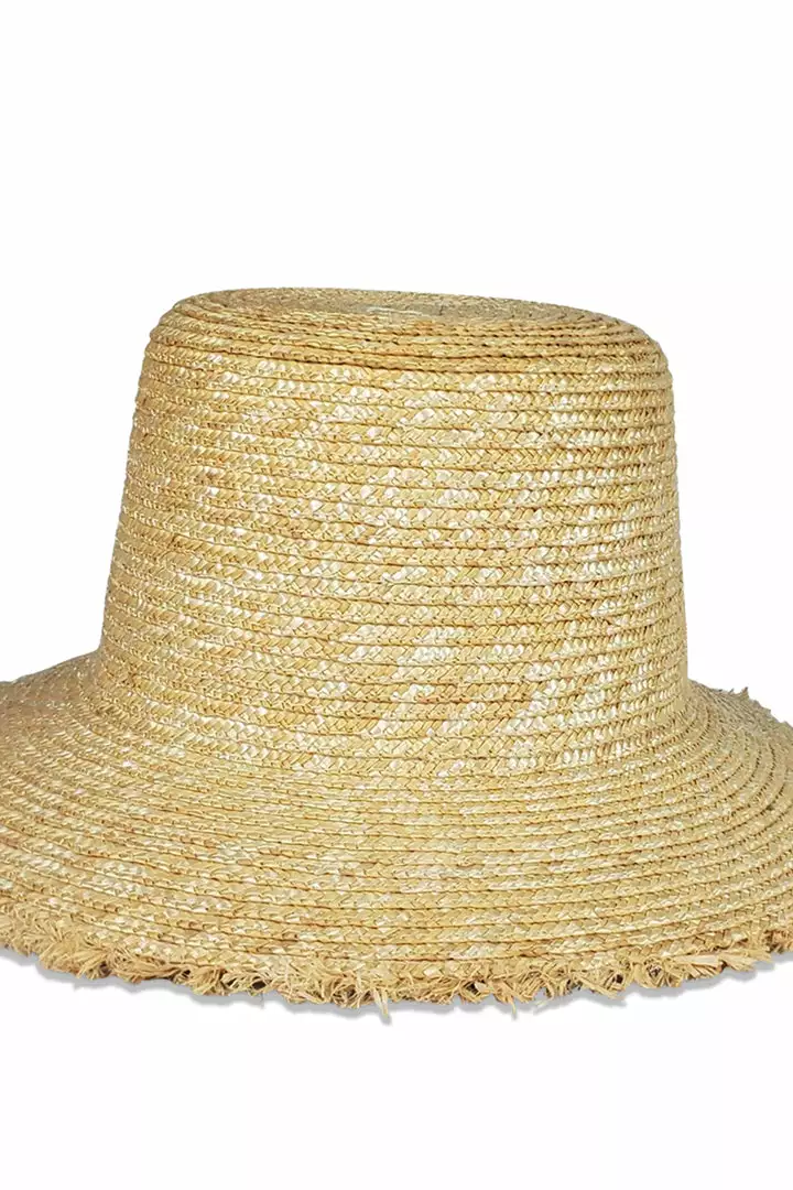 We love the style of this hat with it’s square-top crown, and downward-leaning brim. The fringed edging adds a laid back charm and all that’s missing are some jumbo sunnies.