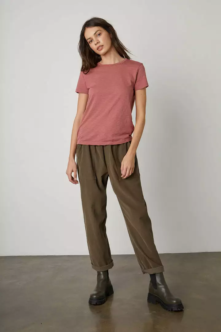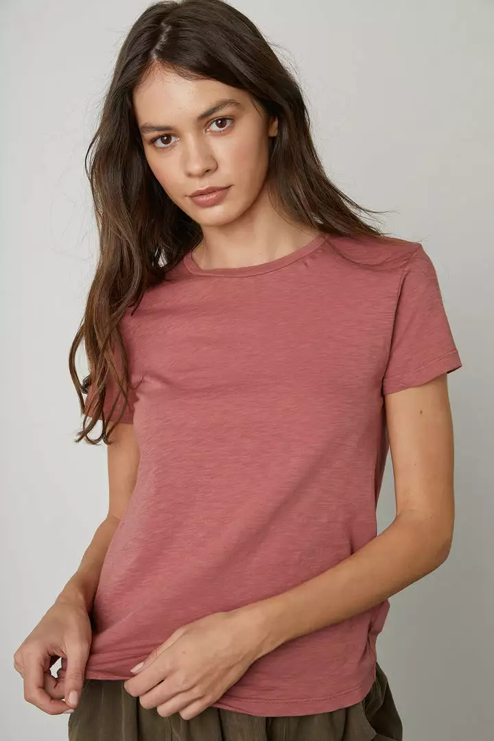 Part of the crew. Crafted from our signature cotton slub, which has a soft hand and slightly heathered texture, this tee feature some subtle details we love. There is a slightly shrunken silhouette which gives a sweet retro vibe. A great closet underpinning.