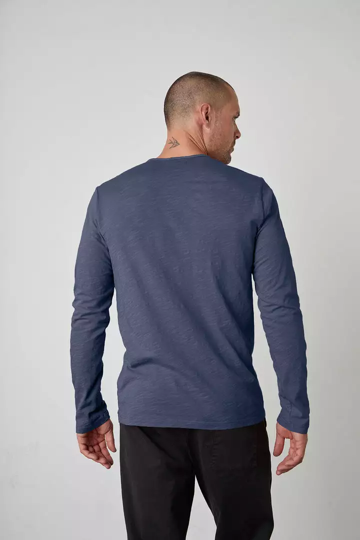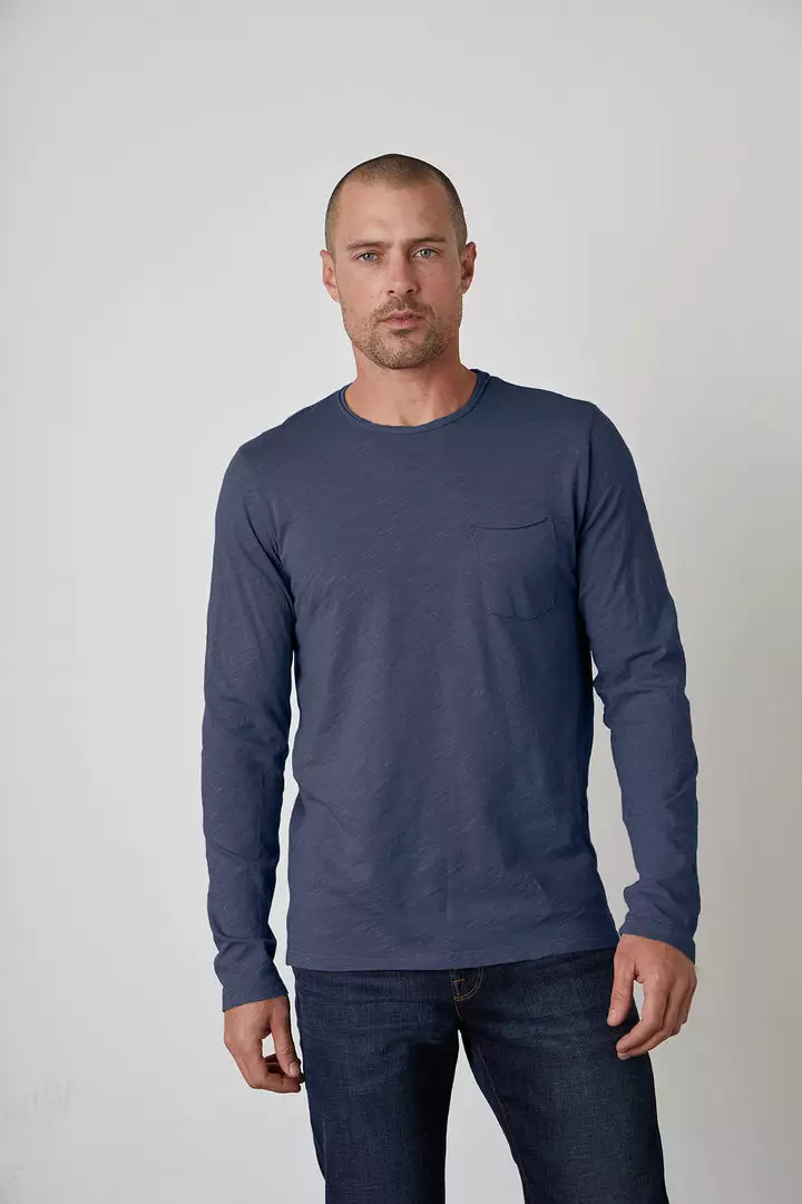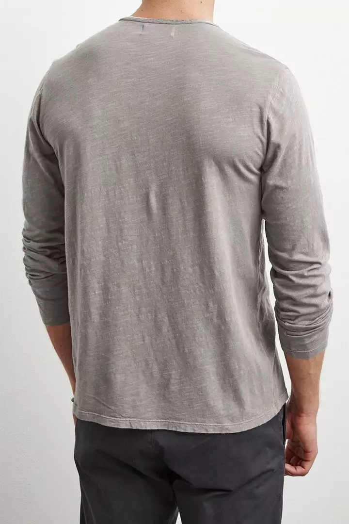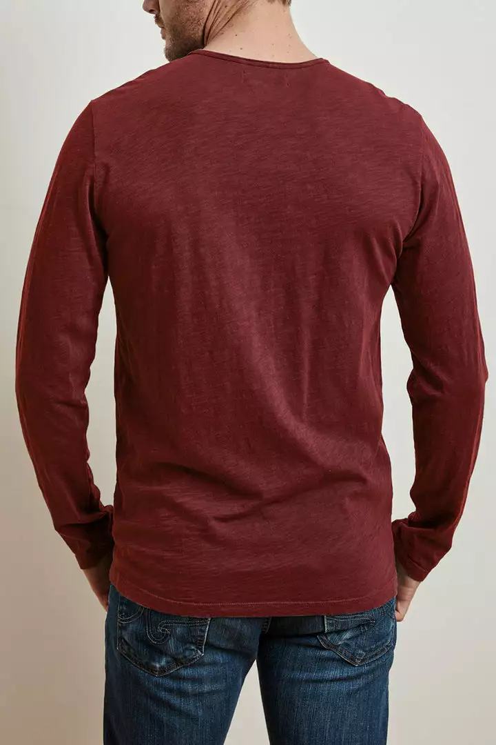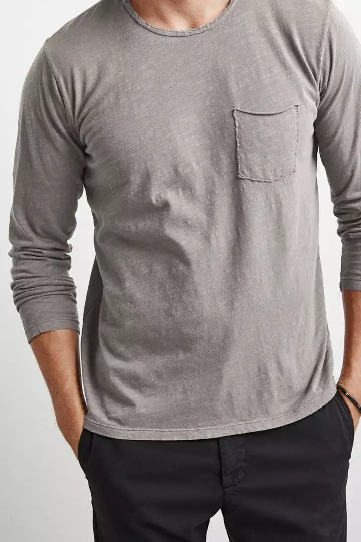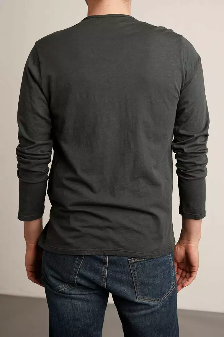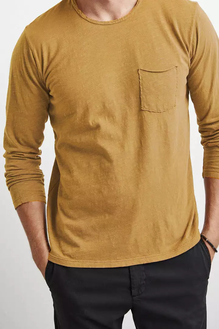 With its laid-back details, this tee really highlights our California heritage. The textural details of our soft slub cotton lend a soft hand, while the raw-edge details along the banded neckline, as well as the patch pocket, develop a subtle rolled look over time. Always a weekend favorite.