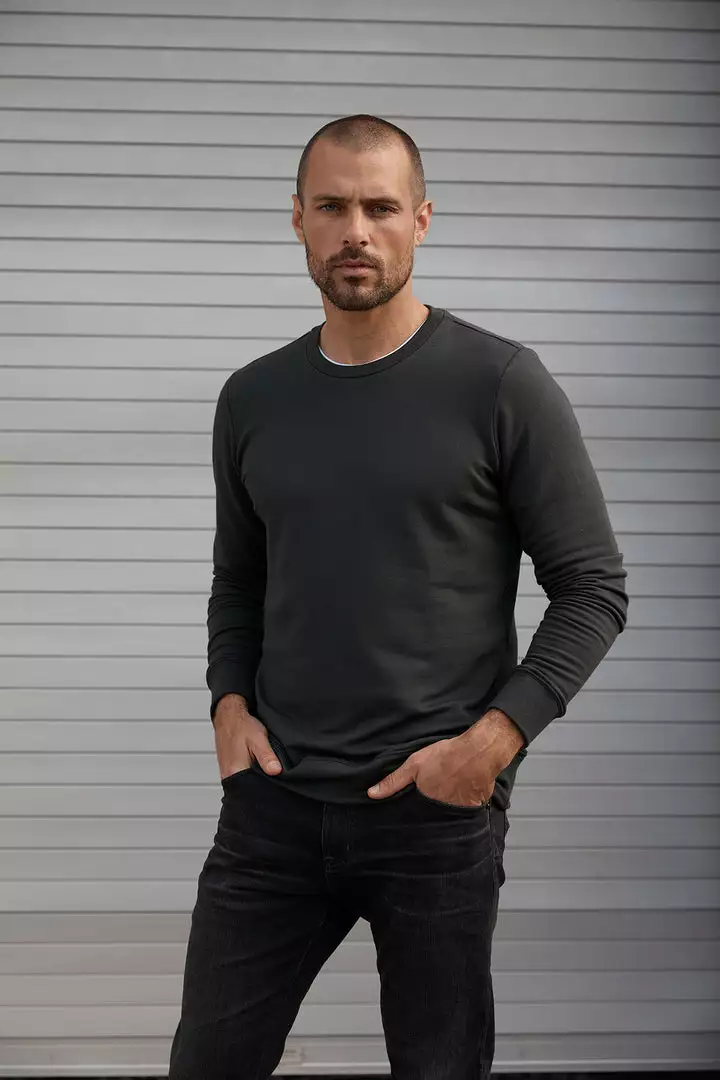 Cozy without being bulky. Crafted from a medium-weight fleece that has a super soft interior as well as a great stretch. A self-binding crew neckline is designed for comfort, as well as engineered tubular stitching along the shoulders and armholes make this ideal as workout gear.