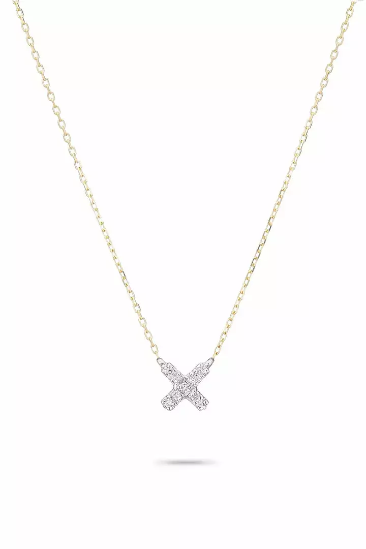 x marks the spot, and that spot will be your décolletage when you slip on this demure neck charmer. crafted from a 14k gold cable chain and with a silver cross in the center that is adorned with pavé diamonds. pair this with a boyfriend button-up shirt and you’ve got classic look that is timeless.