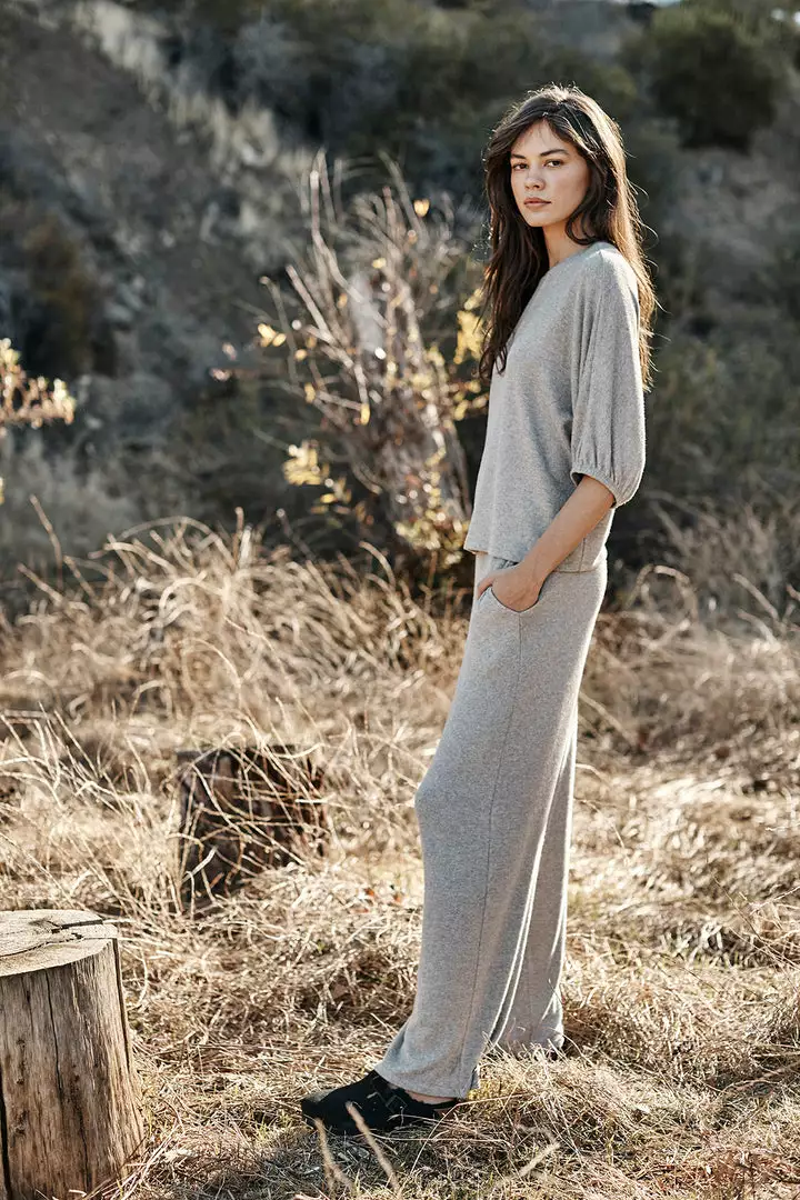 Fit and flare combine in this lounge pant, crafted from our supremely soft lux knit. A flat, elastic waist and a slim fit across the hips gives way to a wide-leg cuff. Designed to go with the flow.