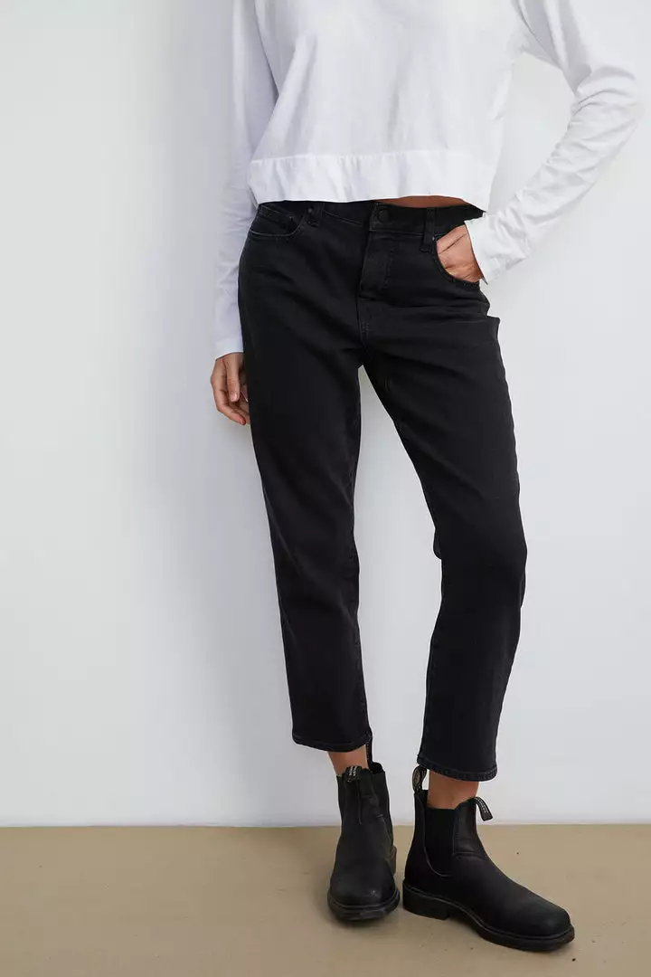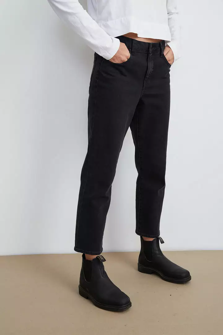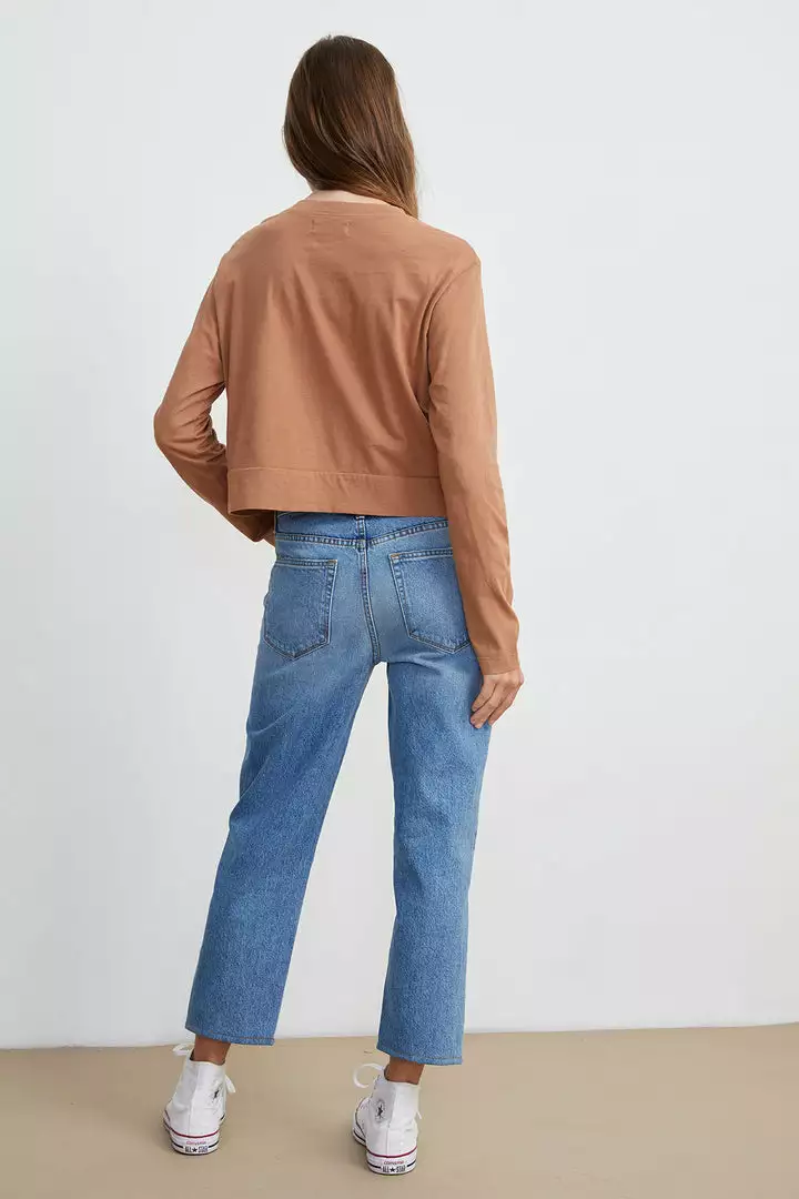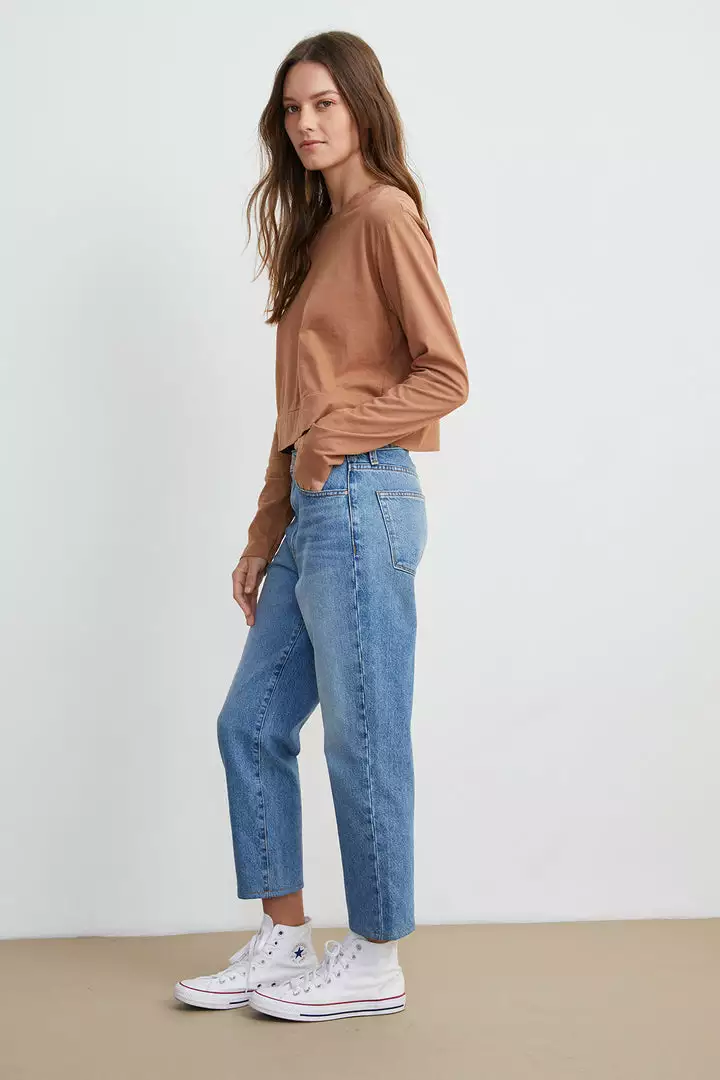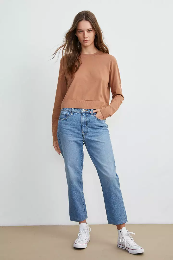 Fresh star. Crafted from our signature denim and made in Los Angeles, these medium wash blues feature a higher rise that hits at the waist, a straight leg that ends with an ankle-skimming crop (you can give an additional chop if you need). Your weekend jeans have arrived.