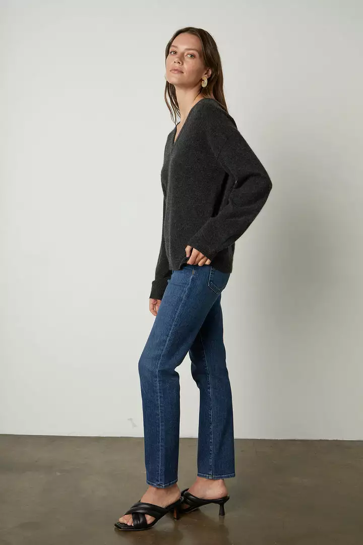 Velvet By Graham & Spencer Womens ABBIE V-NECK CASHMERE SWEATER