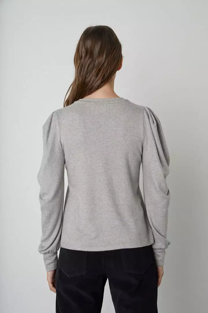 The comfort of a lounge piece with elevated details that take this top from weekend to work. A pleated shoulder seam and elongated, ribbed cuff add a modern structure and refined volume.