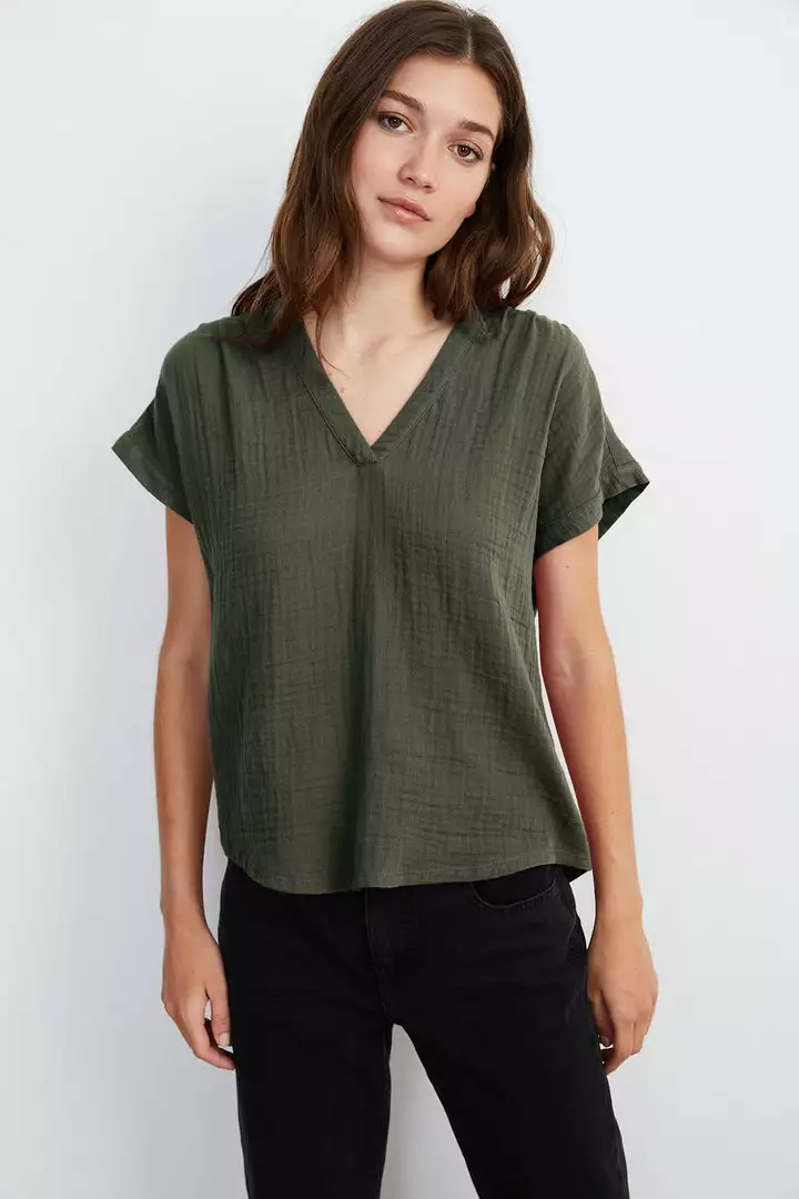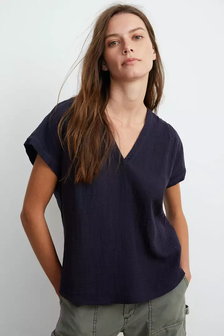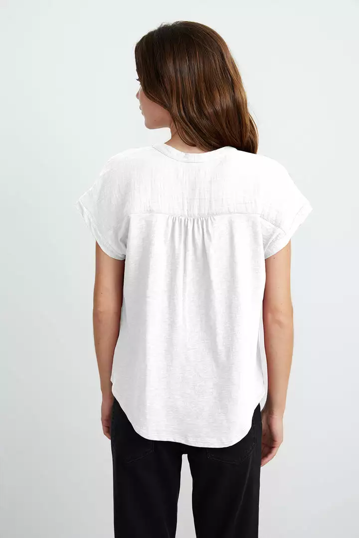 Made for the weekend. The rear panel of this top is our signature cotton slub, while the front and sleeves are a naturally-textured cotton gauze. Comfort meets a fresh staple.