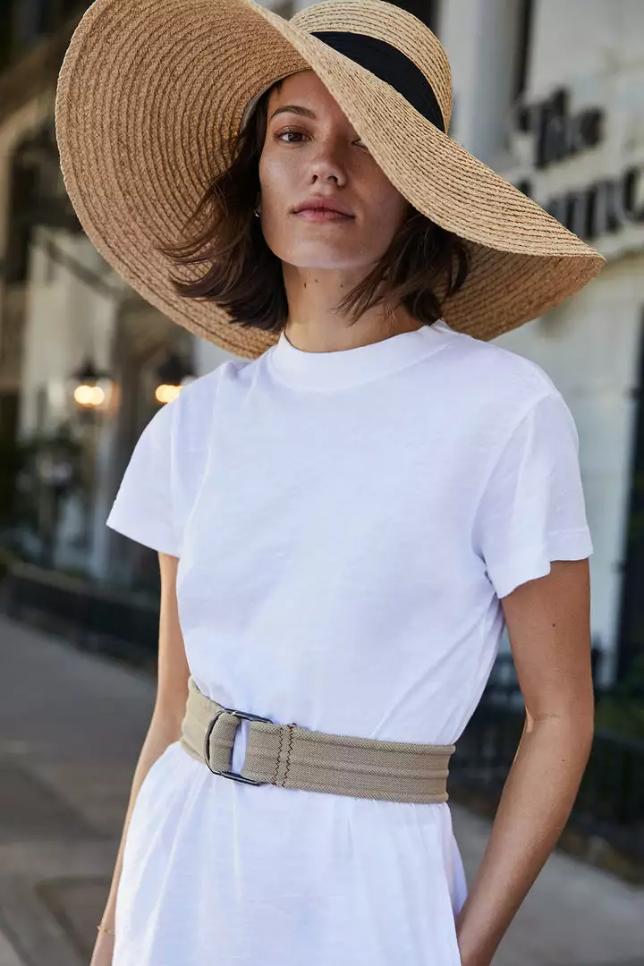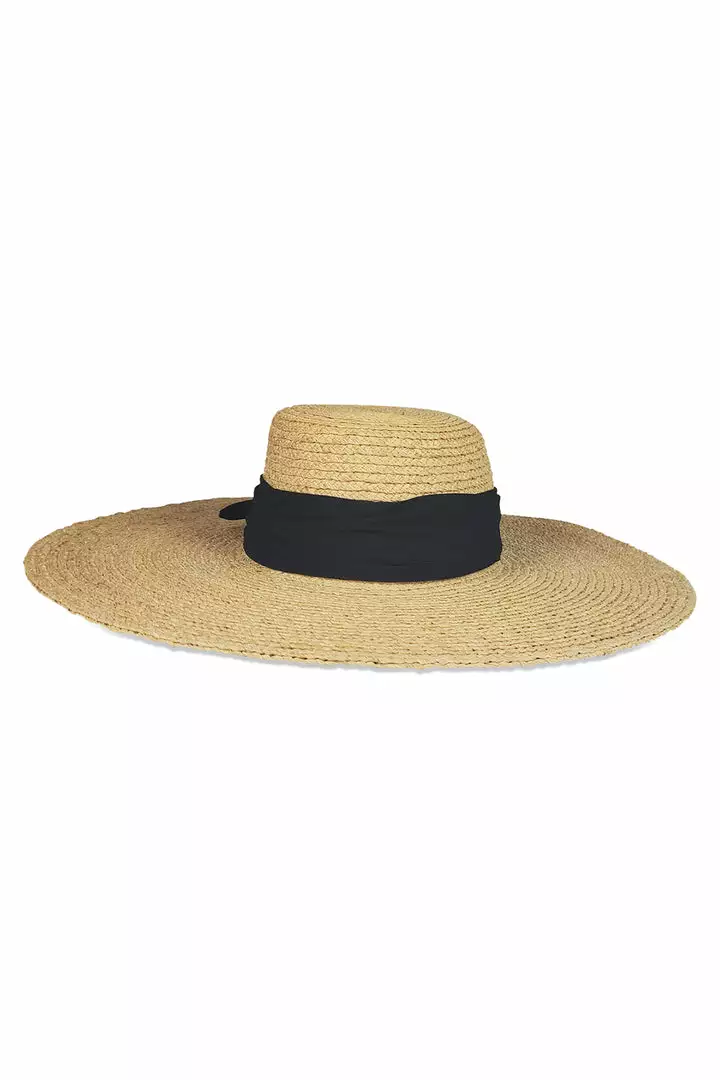 Top it off. Crafted from a natural woven straw, this hat features a wide brim measuring almost six and a half inches so offering ample sun protection for your face. There’s also a romantic black ribbon that flows down the back. Made for now, later and leisurely outdoor afternoons.
